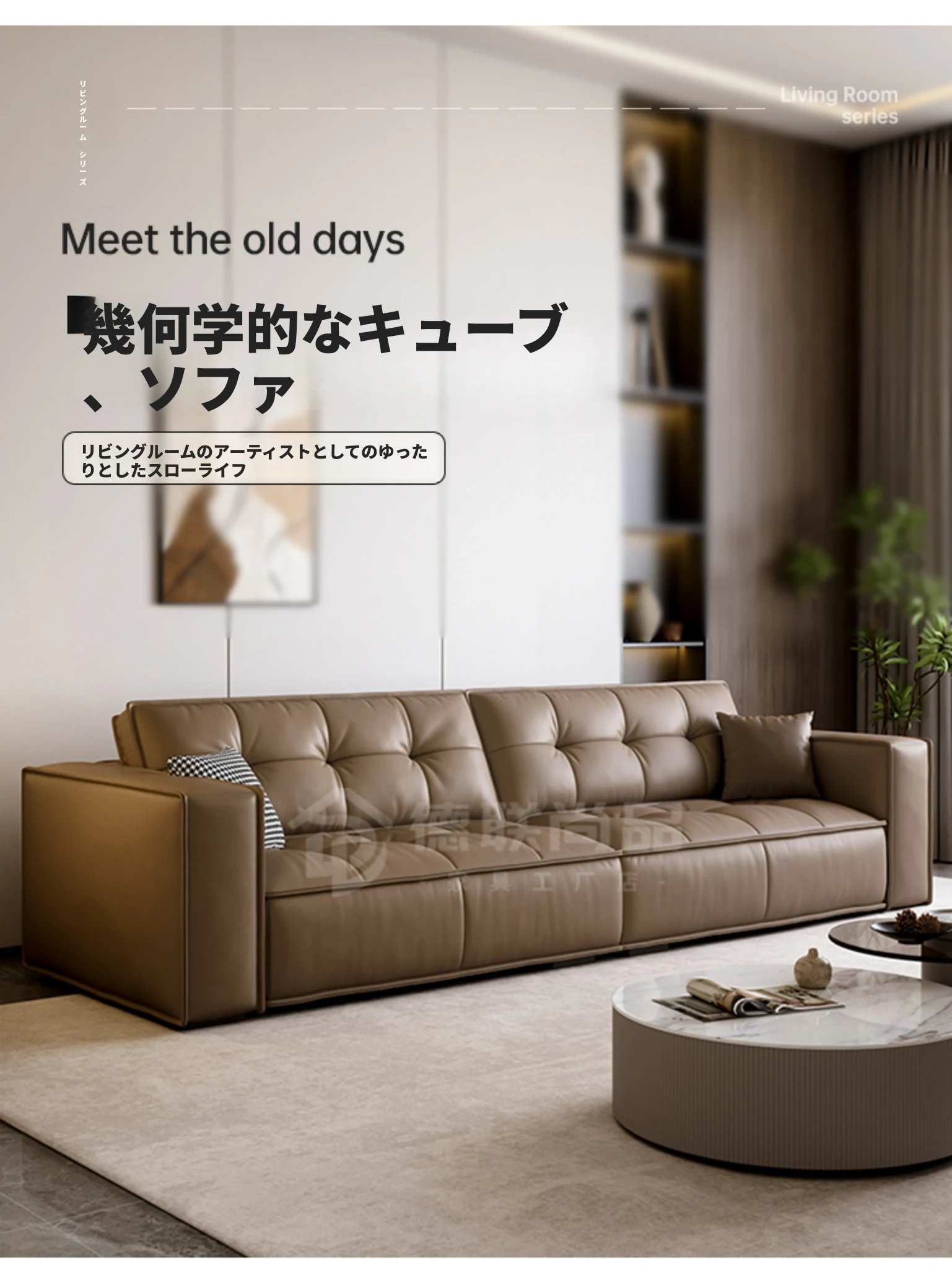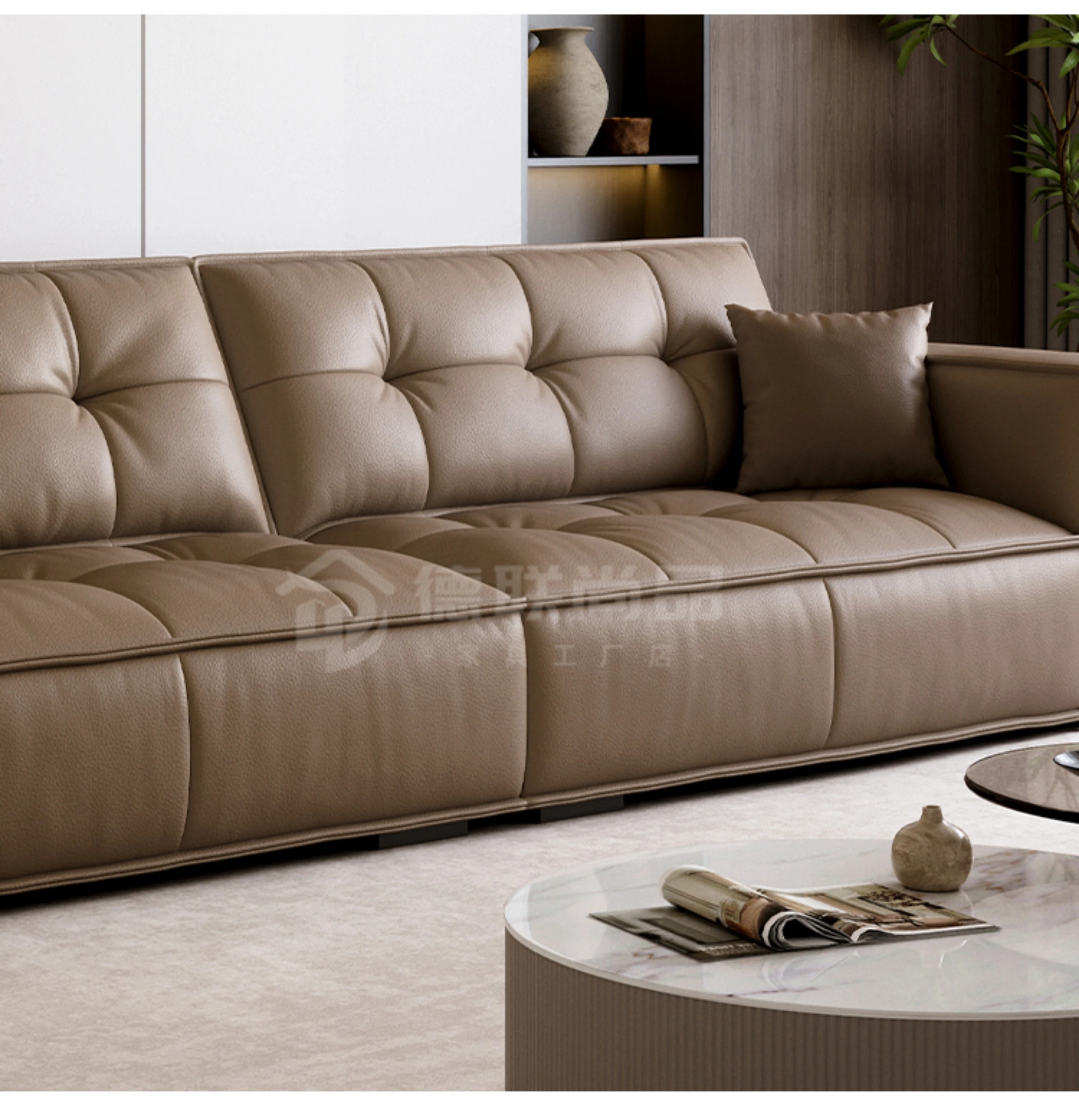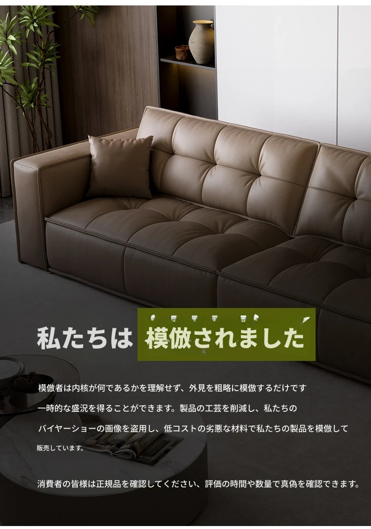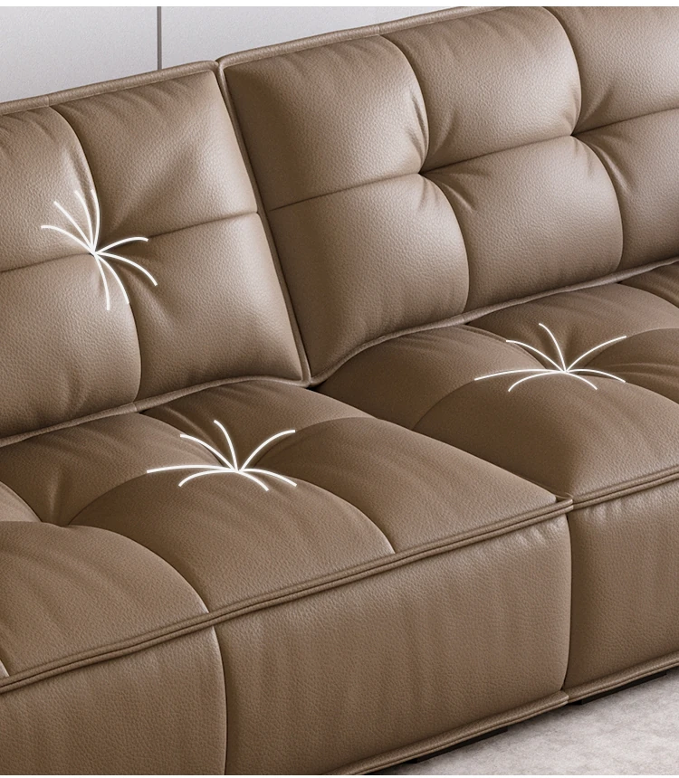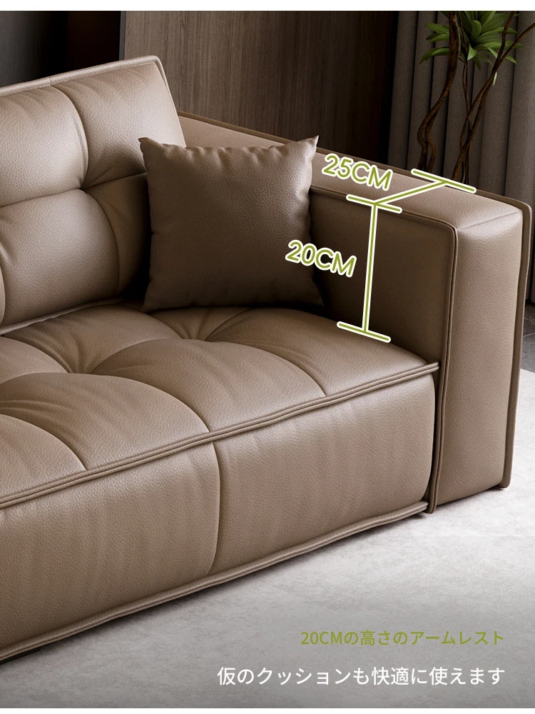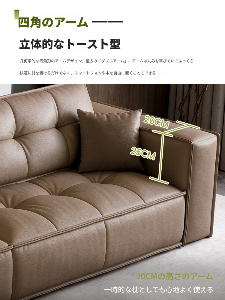 豆腐ブロック型リビング本革ソファ 小型住宅向け 直線デザイン 高級牛革 イタリアンライトラグジュアリー レトロトーストソファ