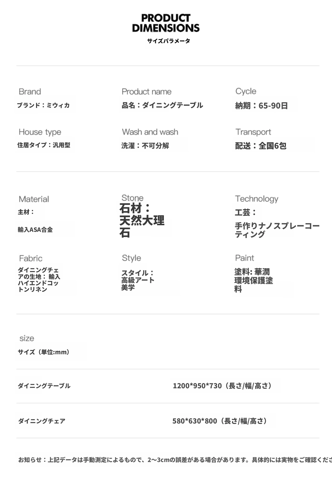 MIVICA・大理石ダイニングテーブル1.2メートル