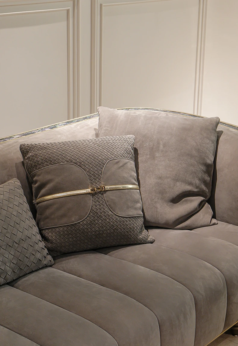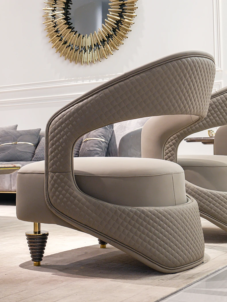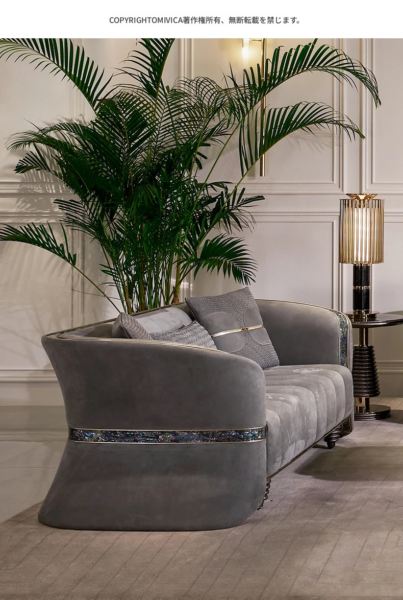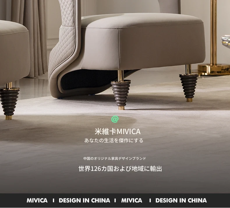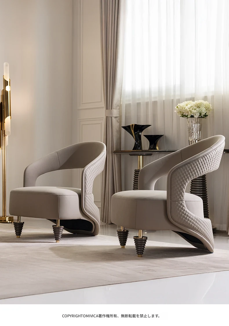 米维卡MIVICAオリジナルデザイン フレンチスタイルのラグジュアリー本革カジュアルチェア 高級グレーソファチェア 国際館F2で特別体験を!