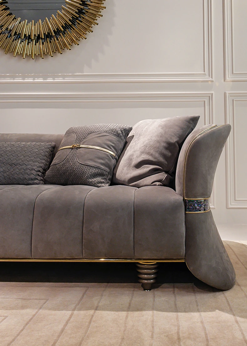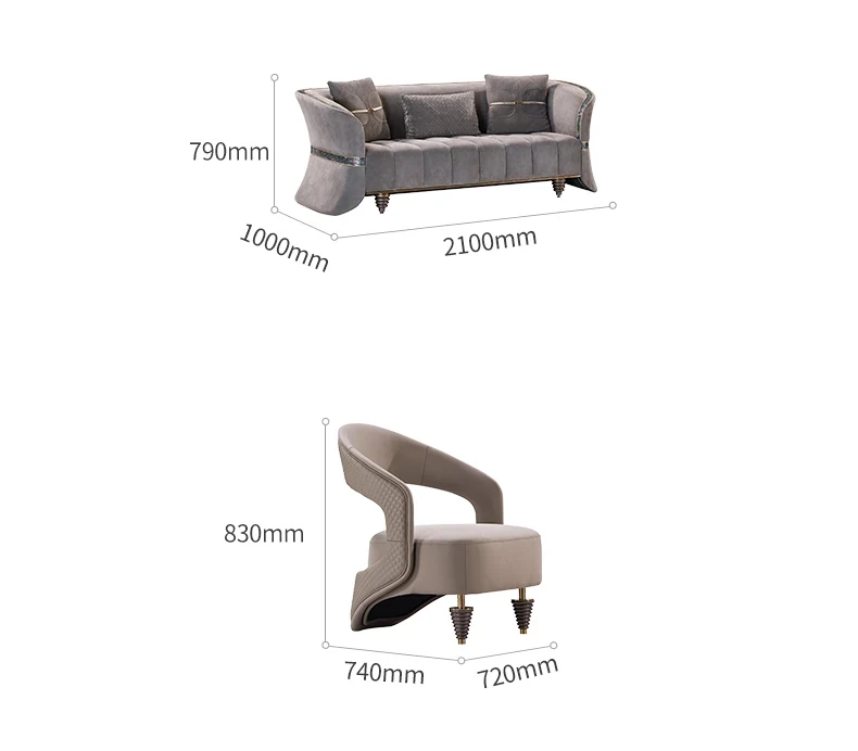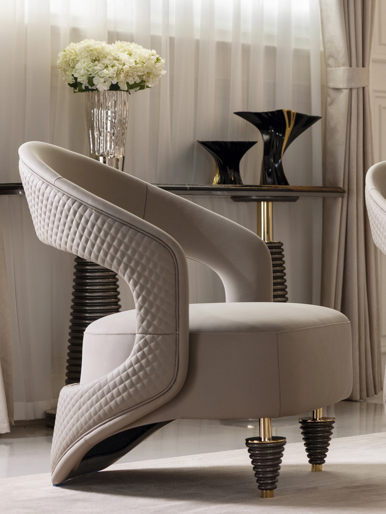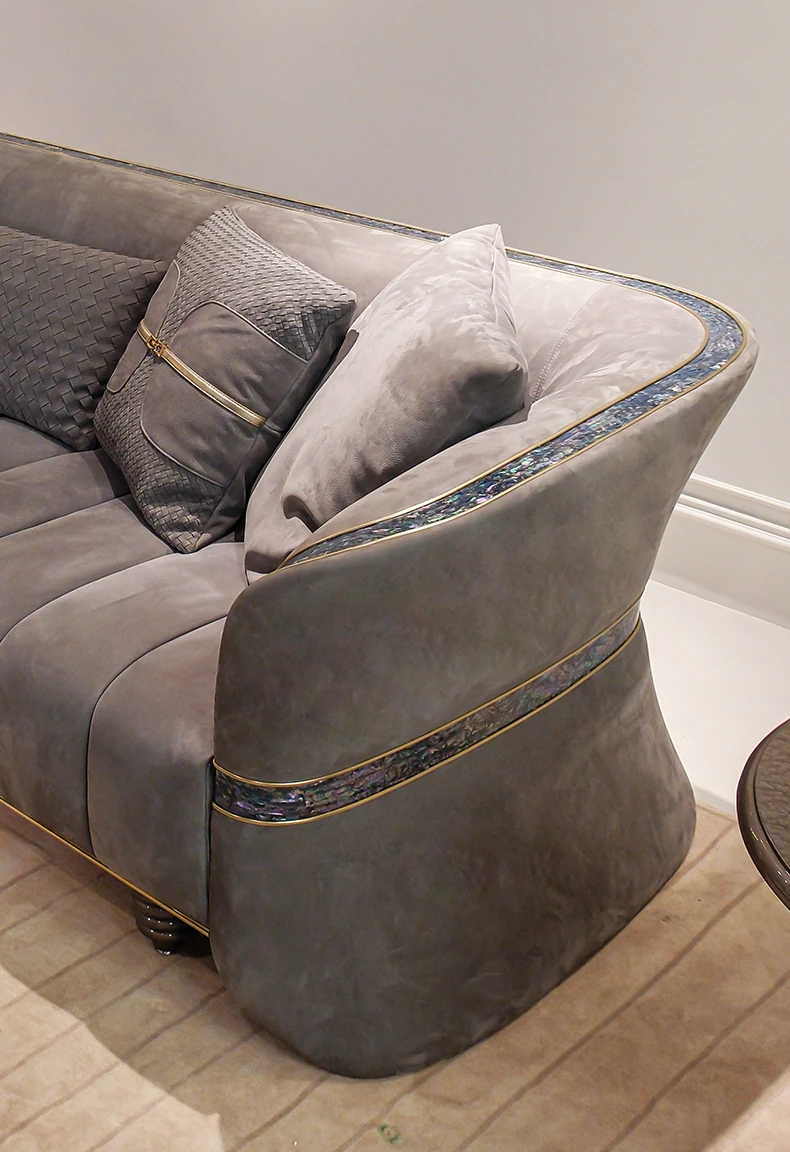 米维卡MIVICAオリジナルデザイン フレンチスタイルのラグジュアリー本革カジュアルチェア 高級グレーソファチェア 国際館F2で特別体験を!