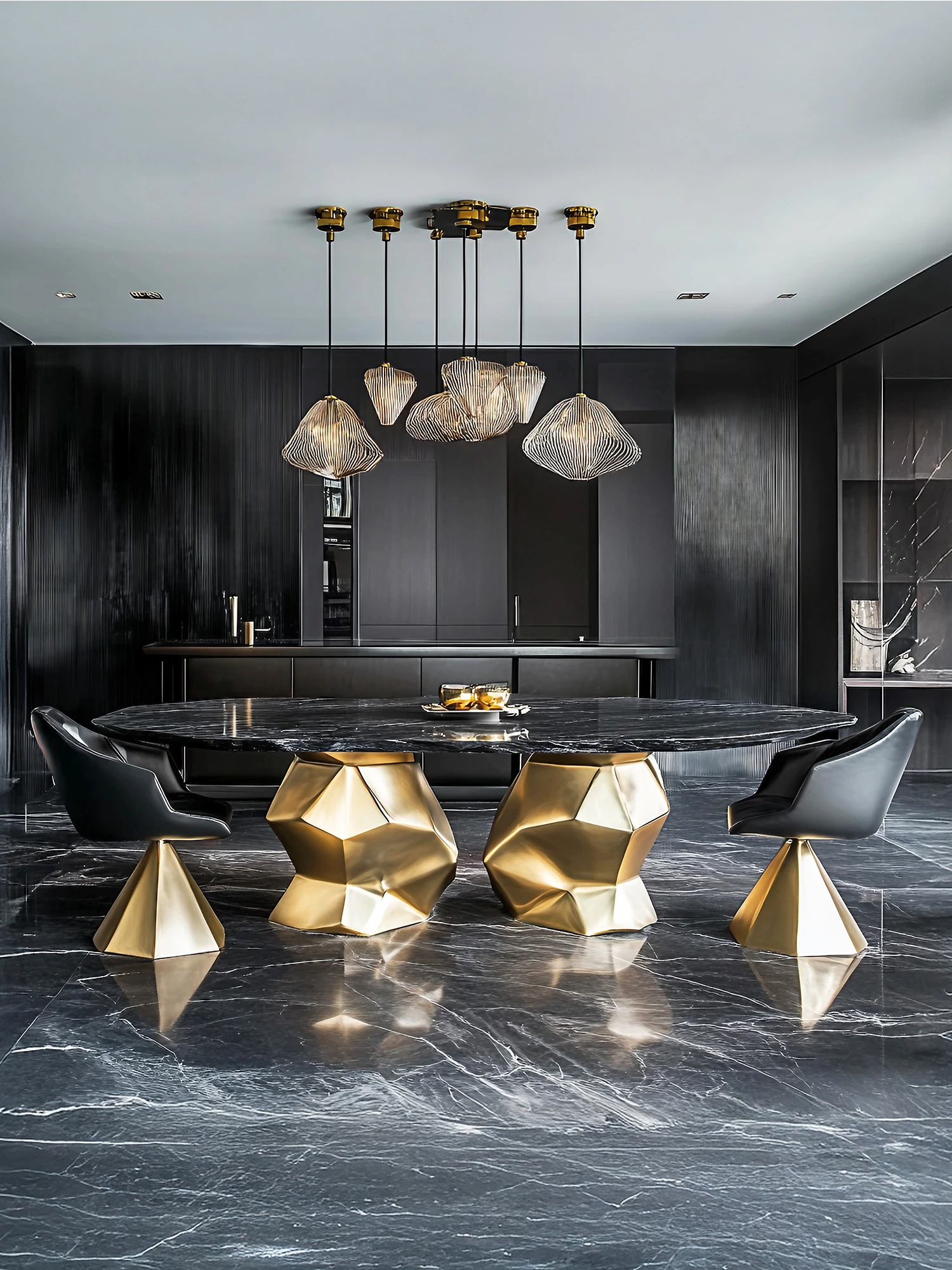 米维卡MIVICAオリジナルデザインのモダンアート長テーブル&チェアセット - 豪華な美学を追求したインテリア、国際的なセンスを感じる高級家具J1