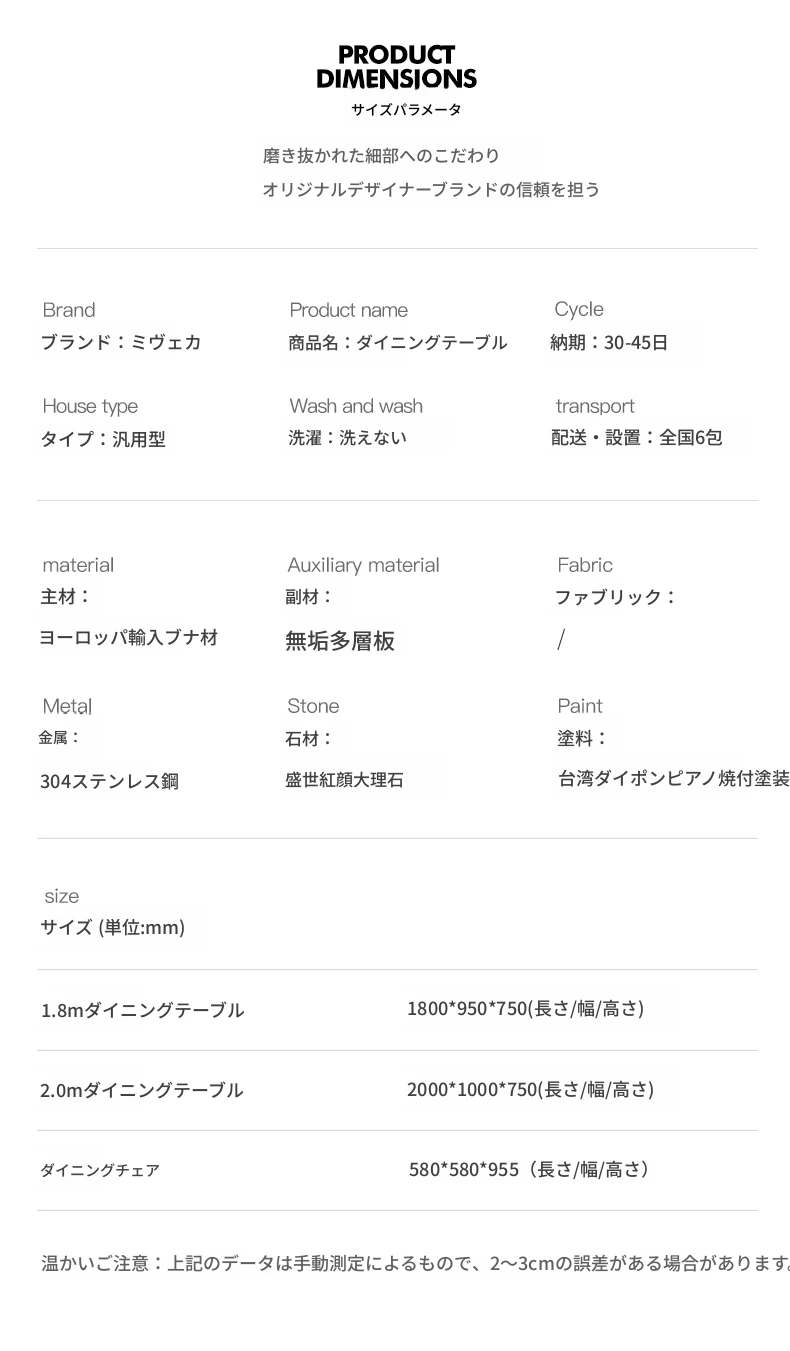 MIVICA·大理石ダイニングテーブル1.8メートル