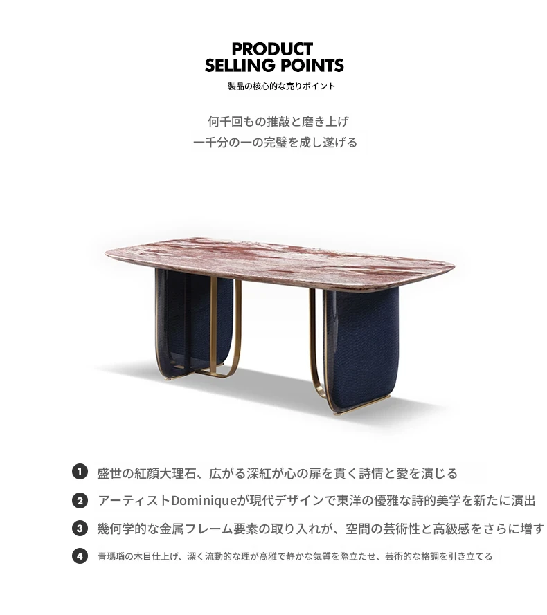 米ヴィカ・ブレイクシリーズ ブラジルの盛世紅顔大理石ダイニングテーブル - ラグジュアリーな美学で、国際感あふれる空間を演出!L1