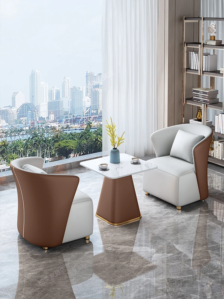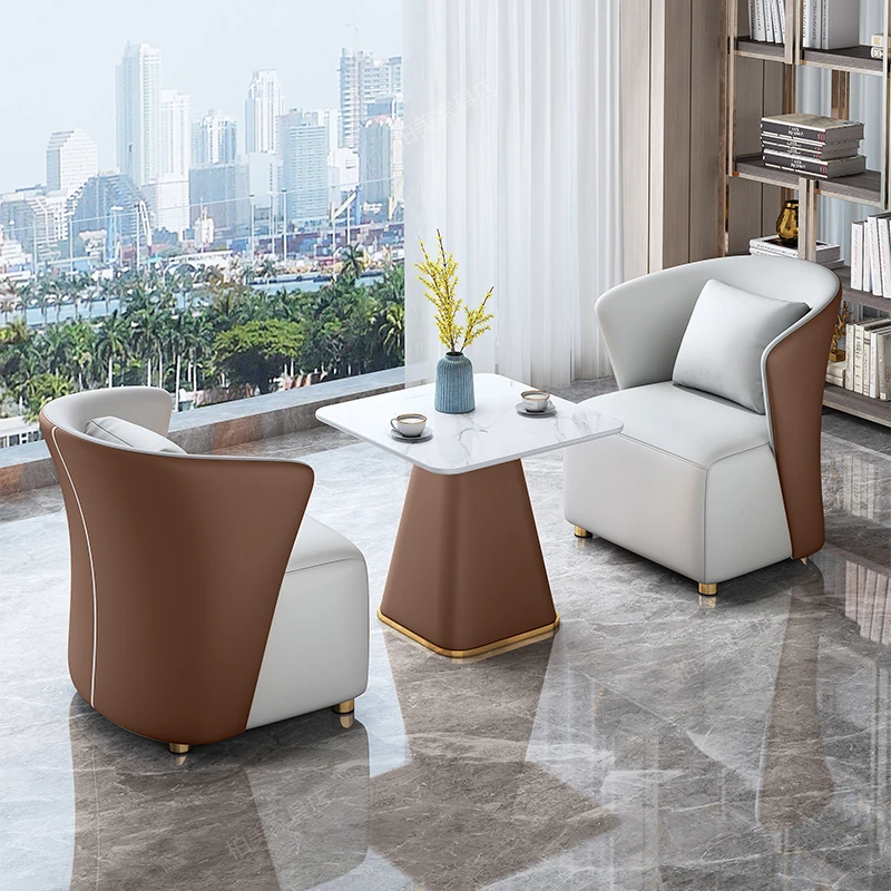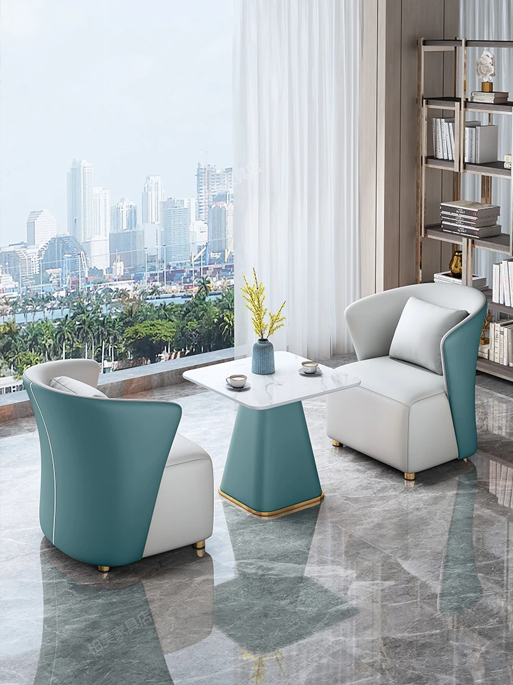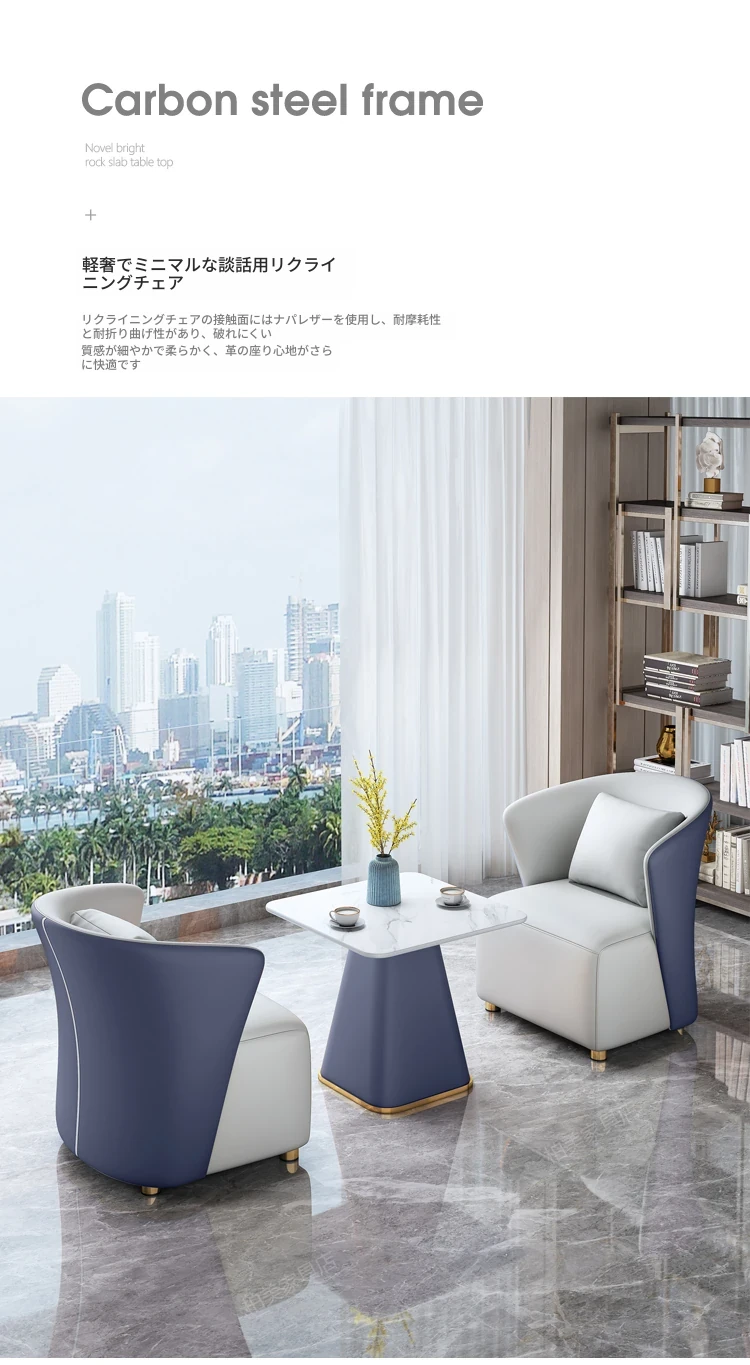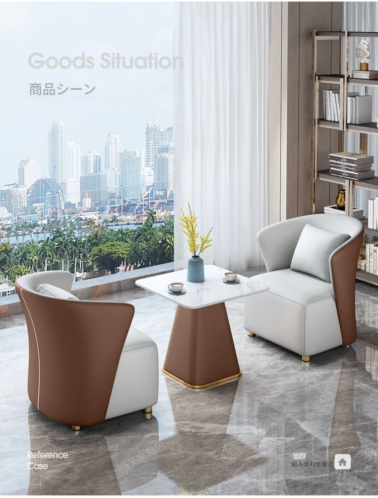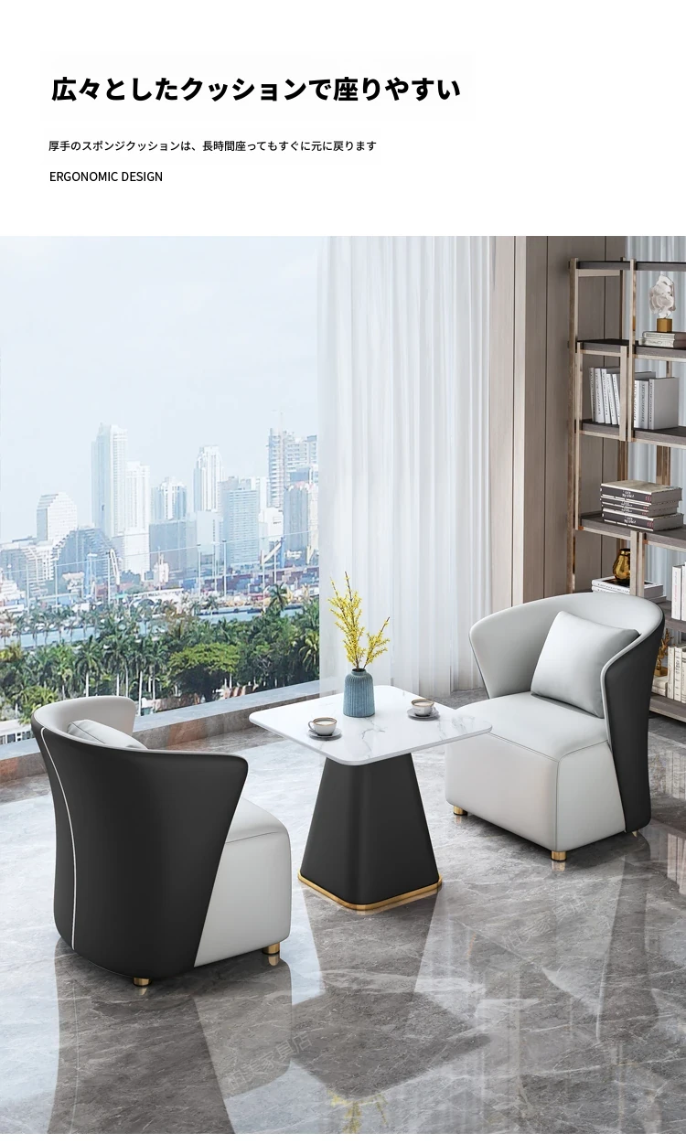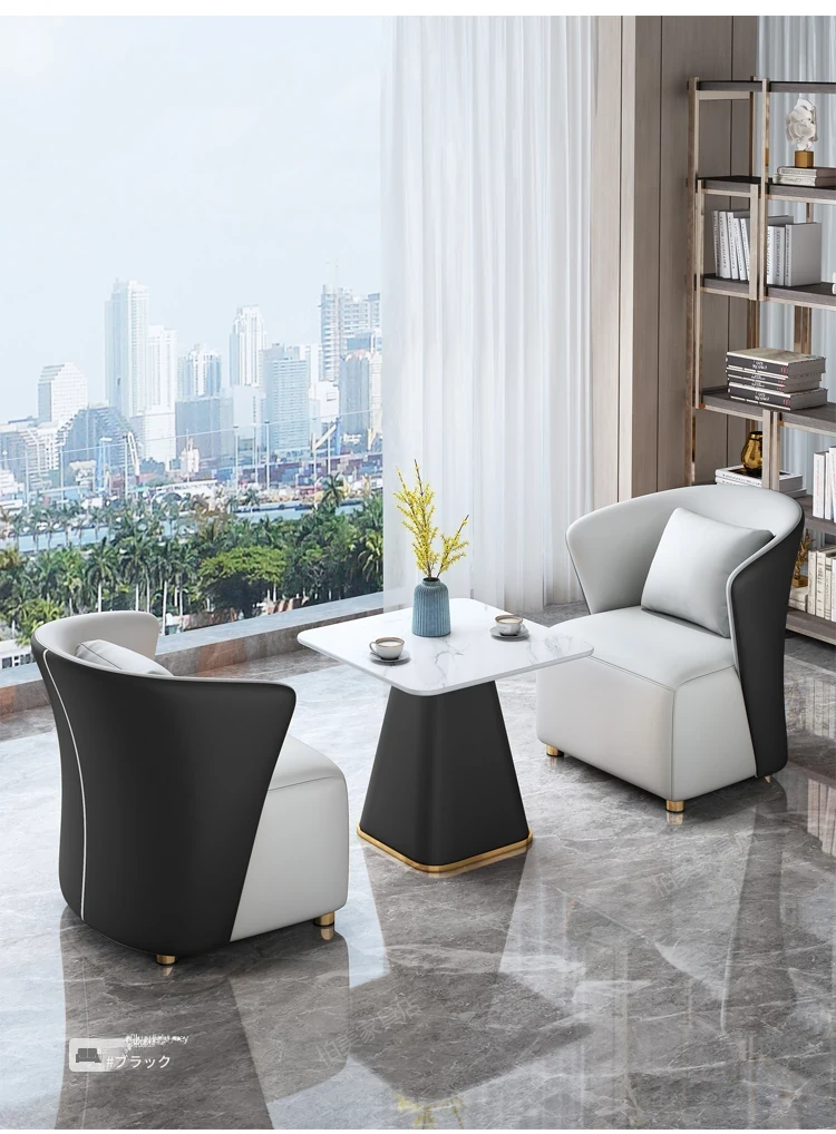 モダンホテルの販売オフィス向けバルコニーソファー椅子 北欧スタイルの接待・会議テーブルセット 高級感あふれるリラックスしたビジネス空間を演出!