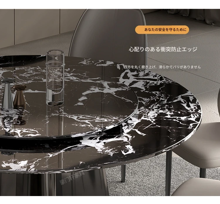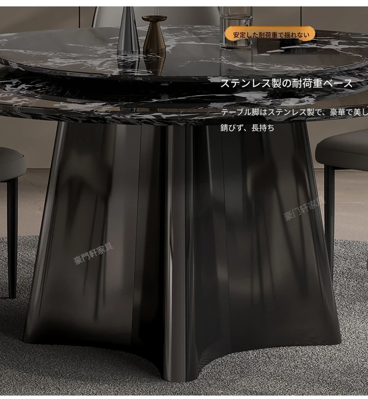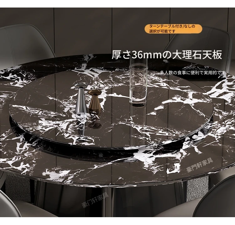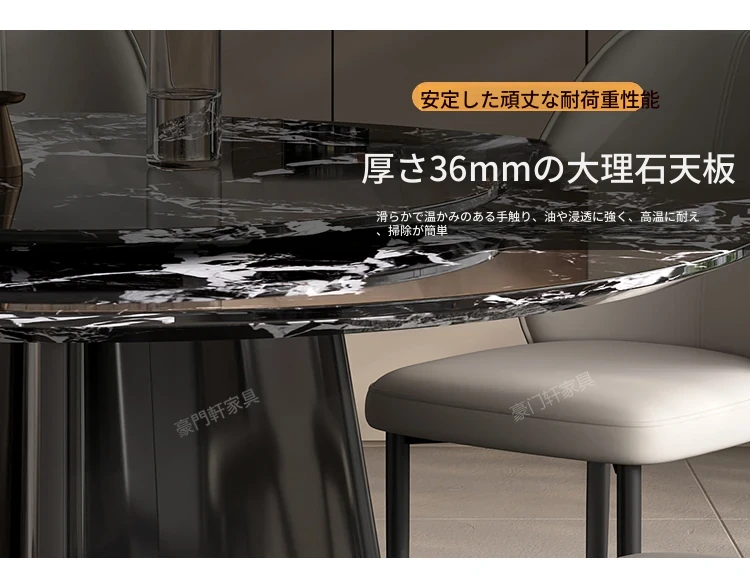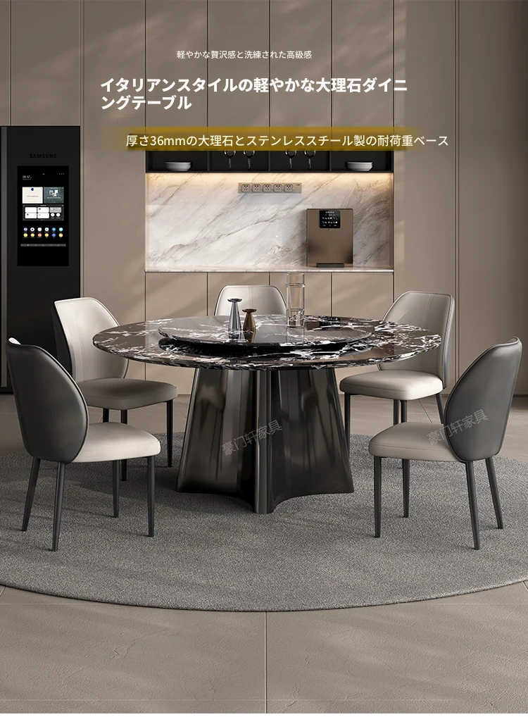 イタリアン・ラグジュアリー大理石ダイニングテーブルセット|現代的でシンプルなデザイン|小さなスペースにも最適な円形テーブル|家族や友人との食事をもっと特別に!