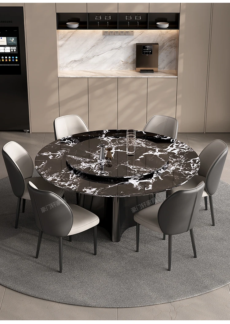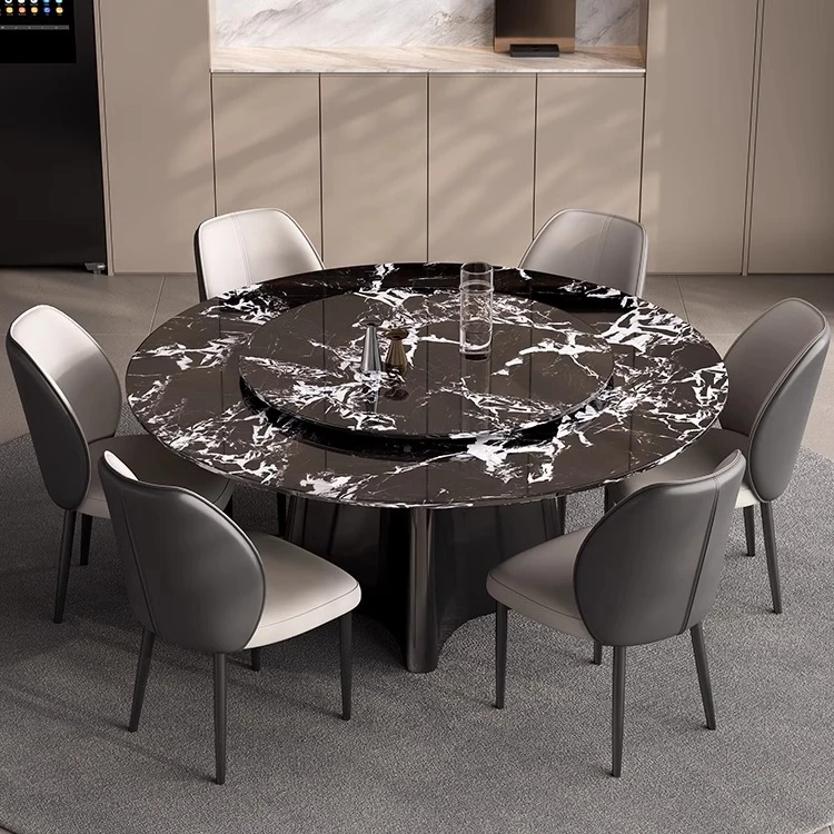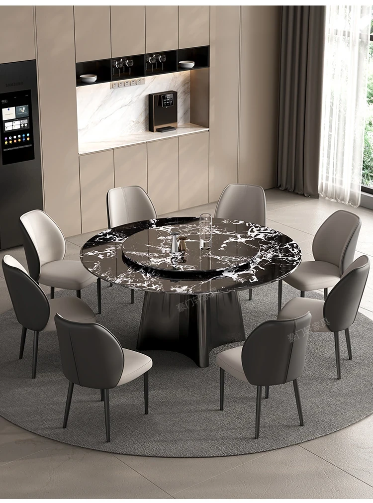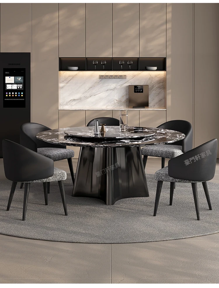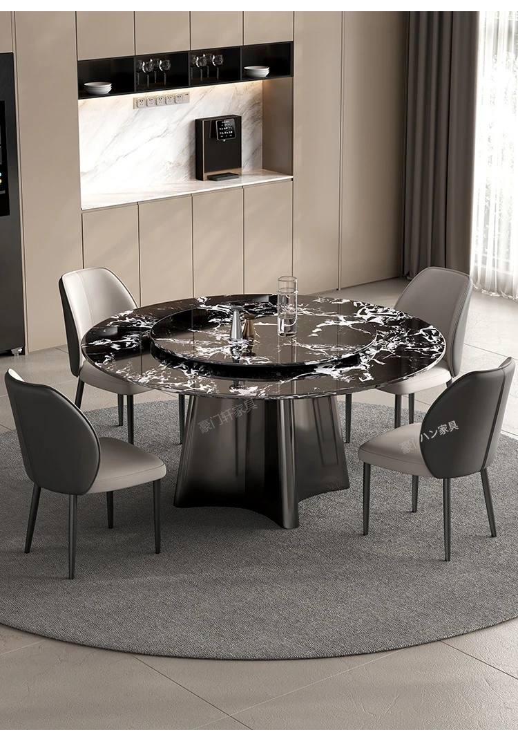 イタリアン・ラグジュアリー大理石ダイニングテーブルセット|現代的でシンプルなデザイン|小さなスペースにも最適な円形テーブル|家族や友人との食事をもっと特別に!