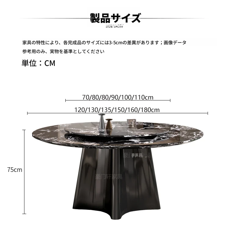 1.3メートルの大理石テーブル【回転盤付き】【厚み36mmのエッジ付き】