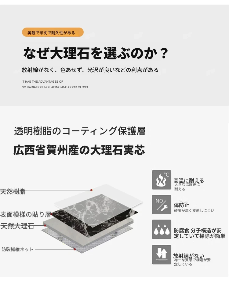 1.8メートルの大理石テーブル【回転盤付き】【厚み36mmのエッジ付き】