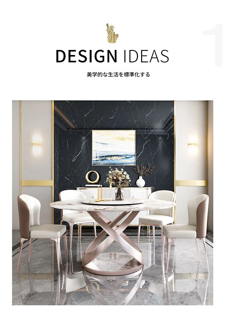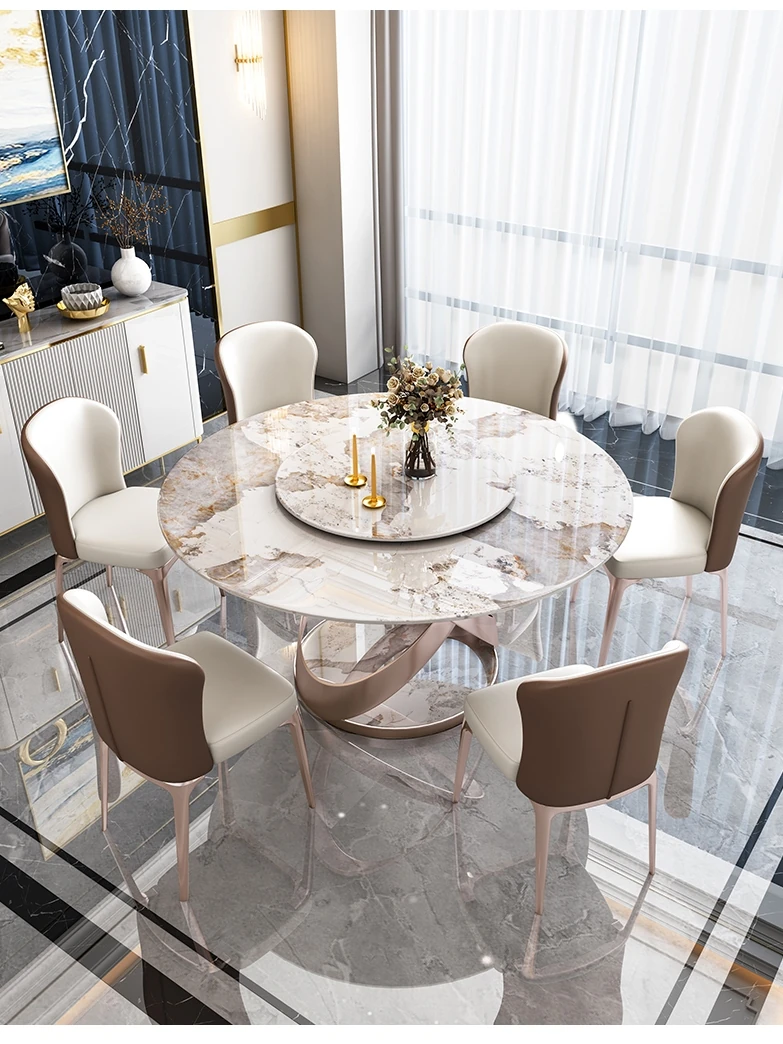 1.6メートル岩板ダイニングテーブル【回転盤付き】+8椅子