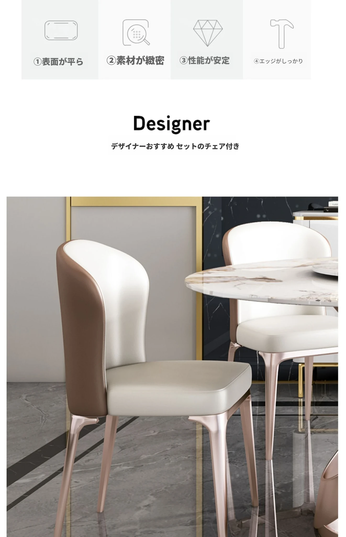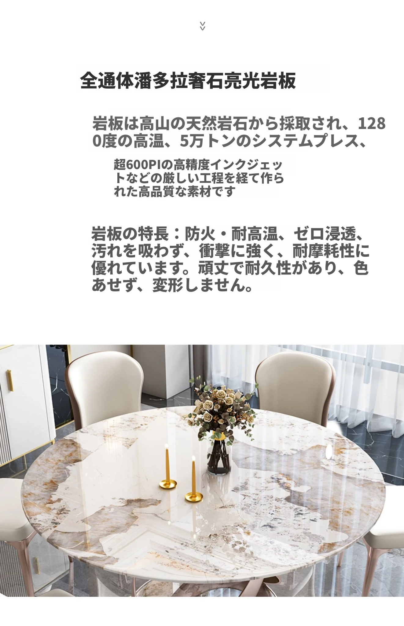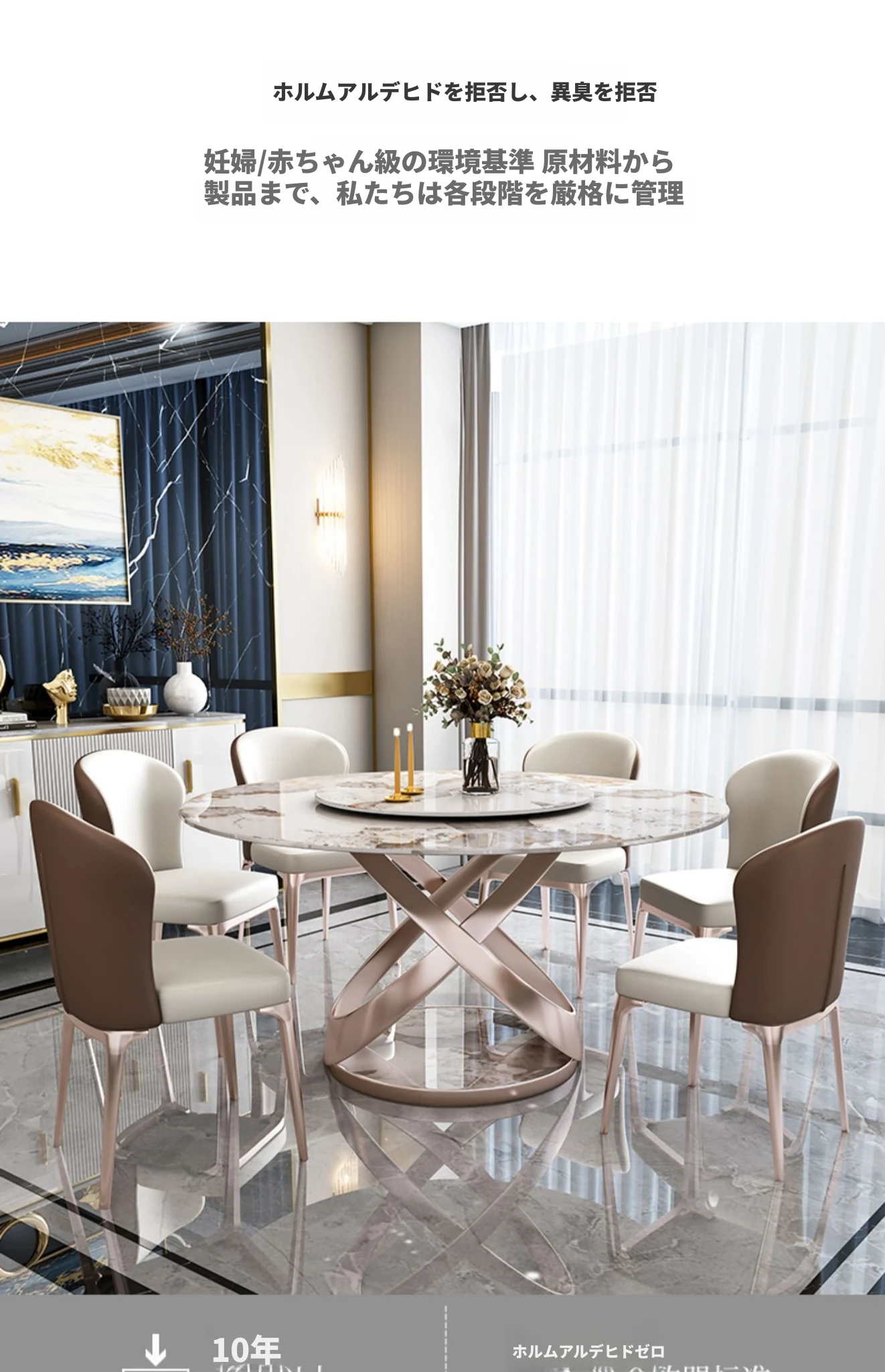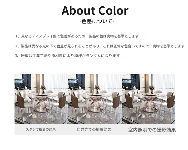 1.8メートル岩板接合ダイニングテーブル【1.2メートル回転盤付き】+10椅子