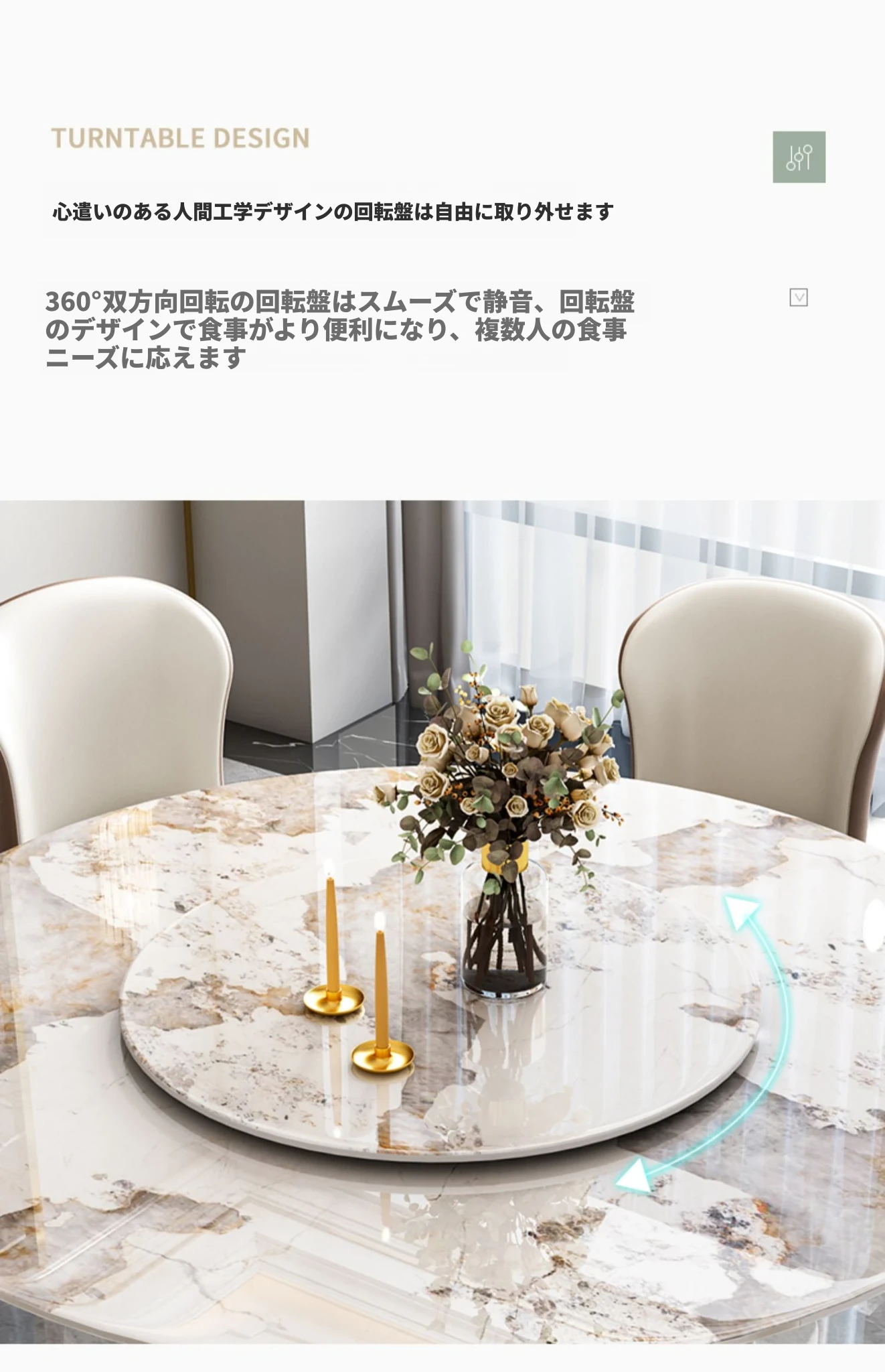1.35メートル岩板ダイニングテーブル【回転盤付き】+8椅子