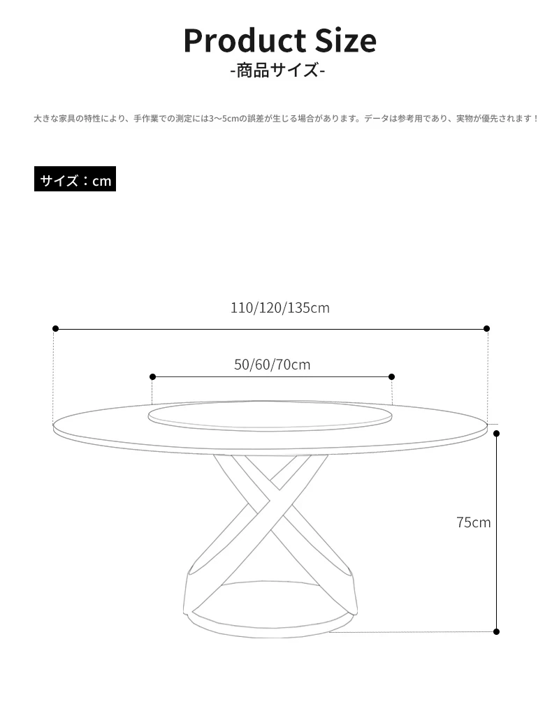 1.35メートル岩板のテーブル【80CM回転盤付き】