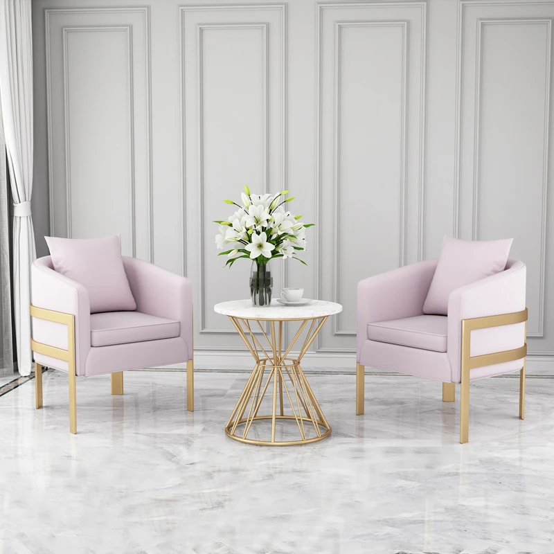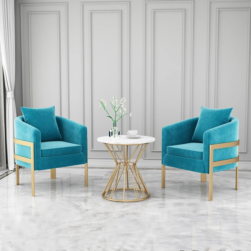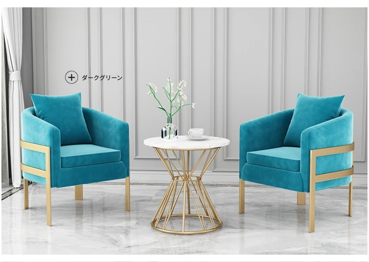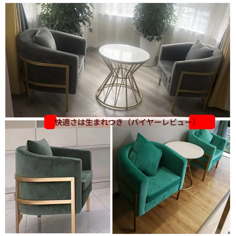 モダンでシンプルなラグジュアリー、リラックスできる一人用美容院ソファチェア。ホテルの客室や会議室に最適な接客・打ち合わせ用テーブルと椅子のセット。スタイリッシュな空間を演出します!