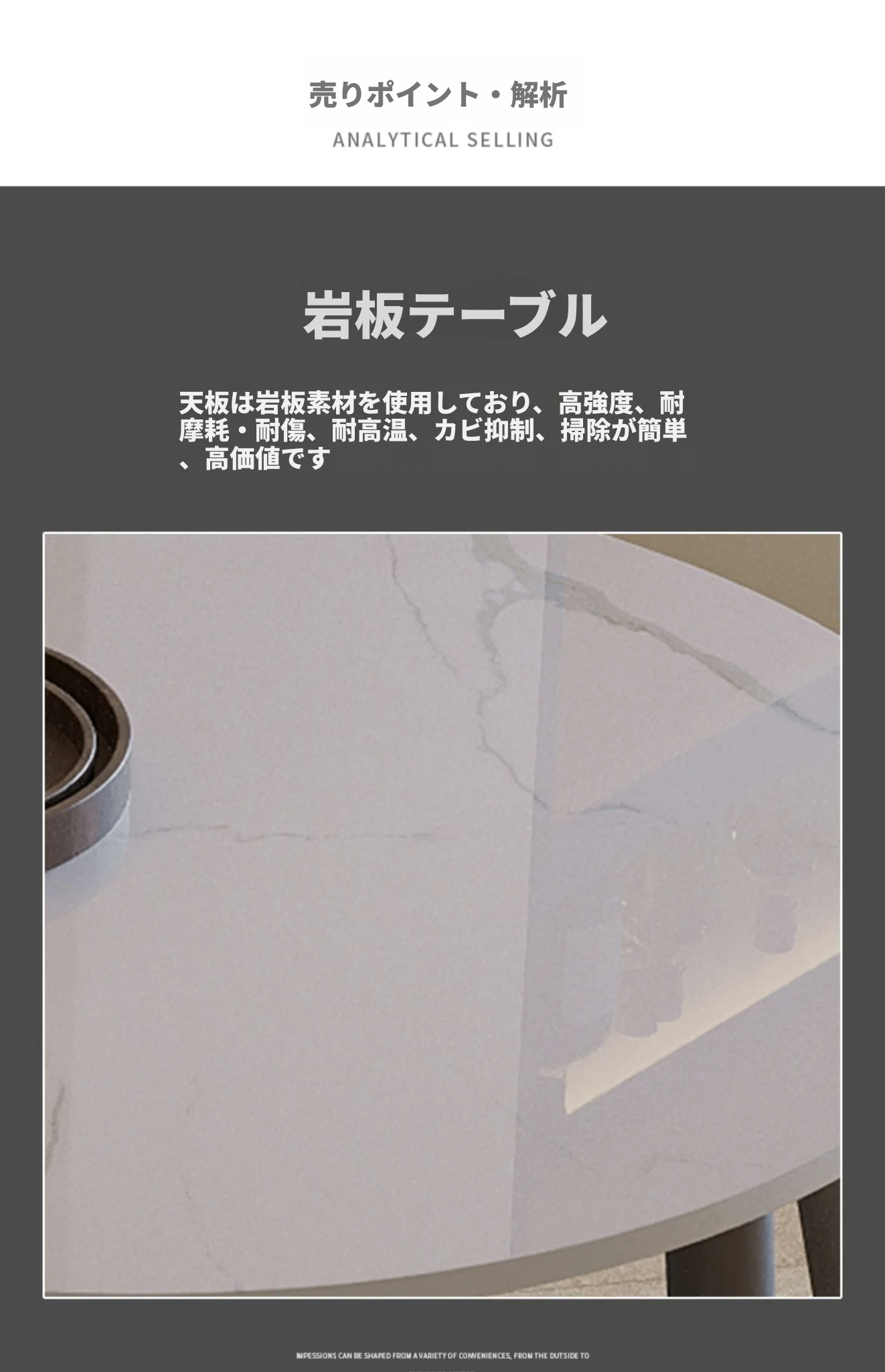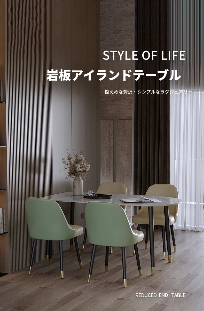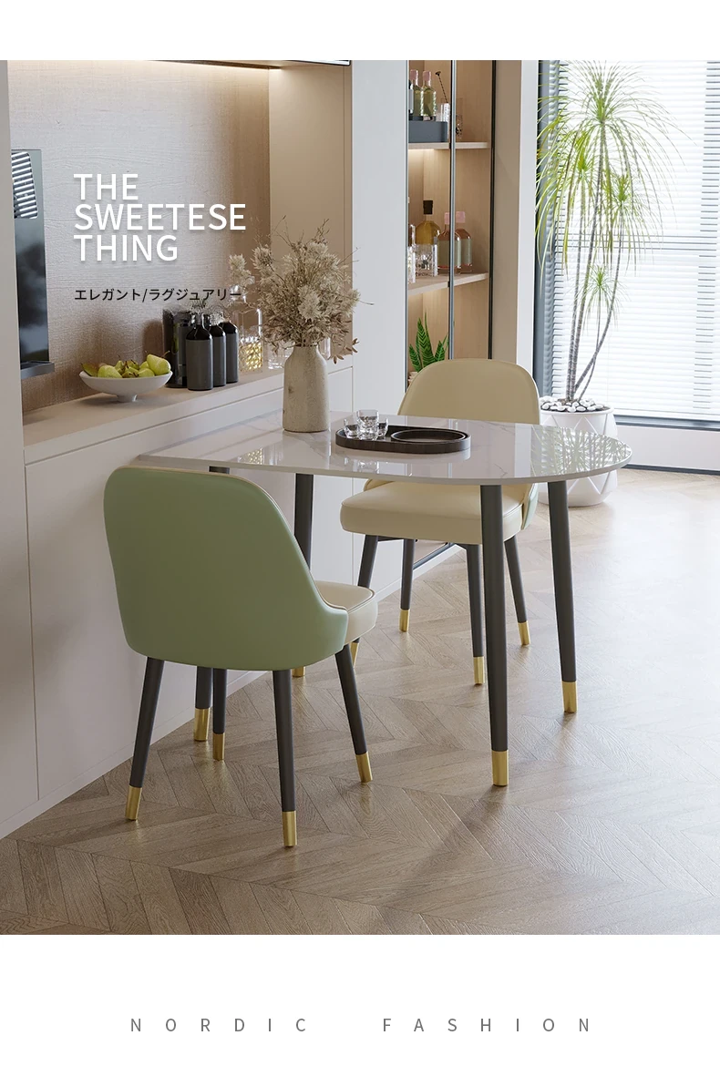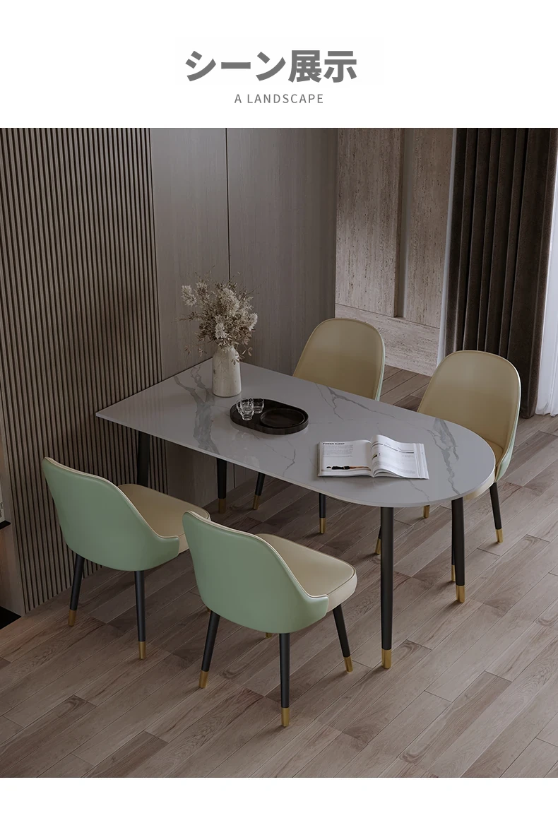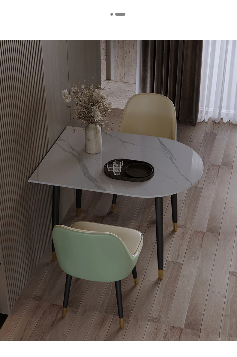光沢のある岩板製のダイニングテーブル、小型住宅向けの北欧風ハーフ円形アイランドテーブル。書き物もできる一体型デザインで、現代的でシンプルなスタイルの家庭用ダイニングテーブル。おしゃれで機能的な空間を演出します!