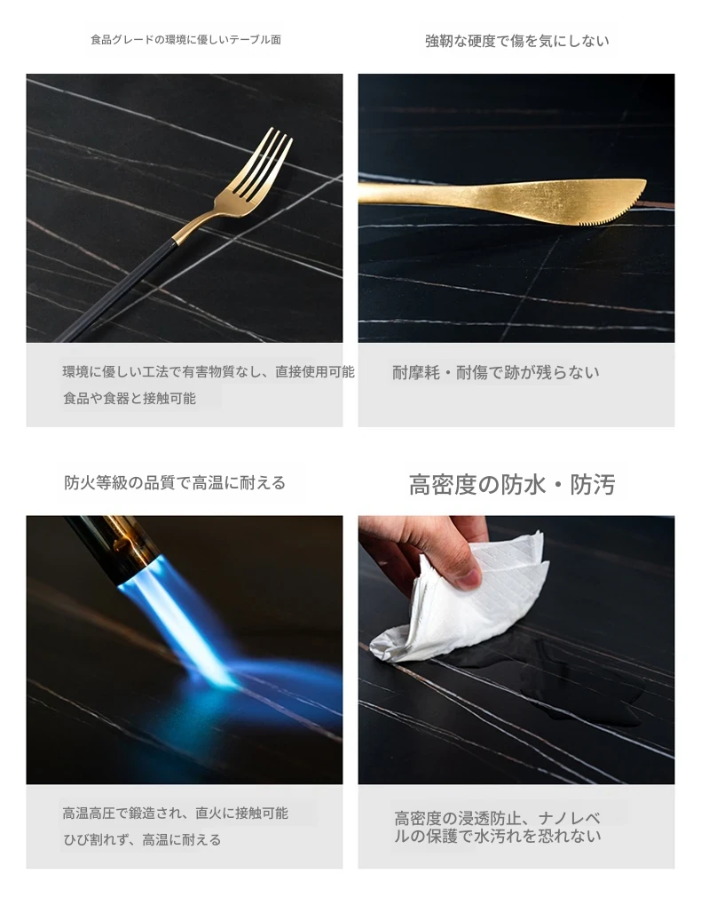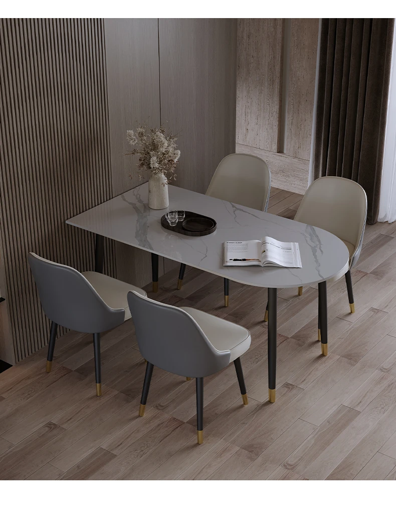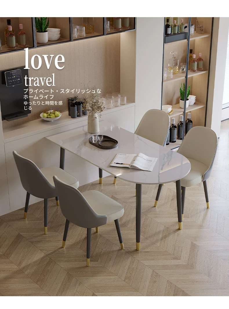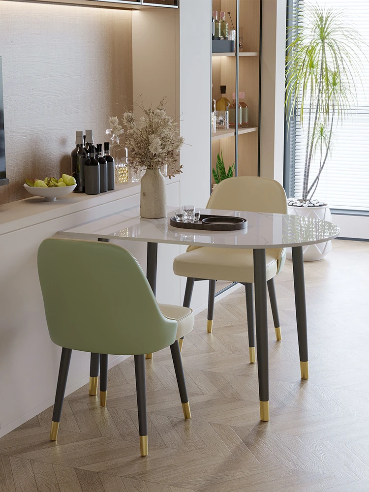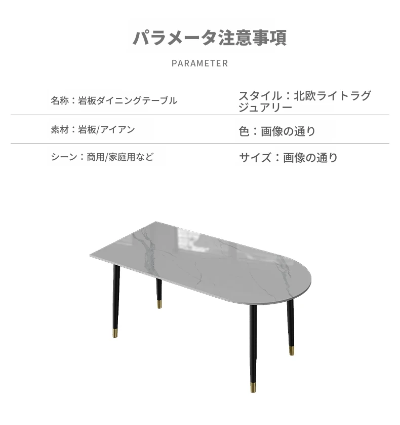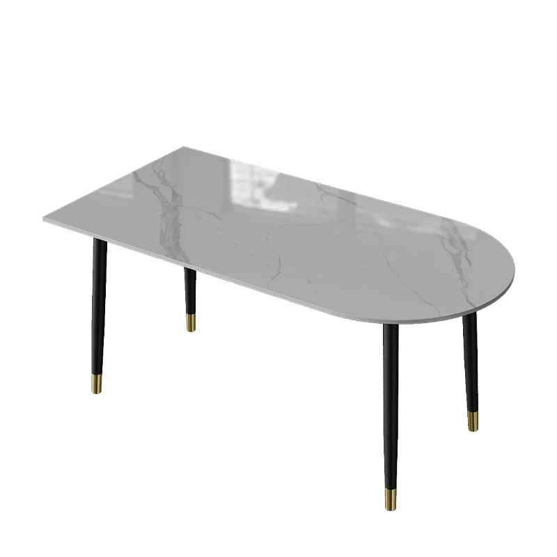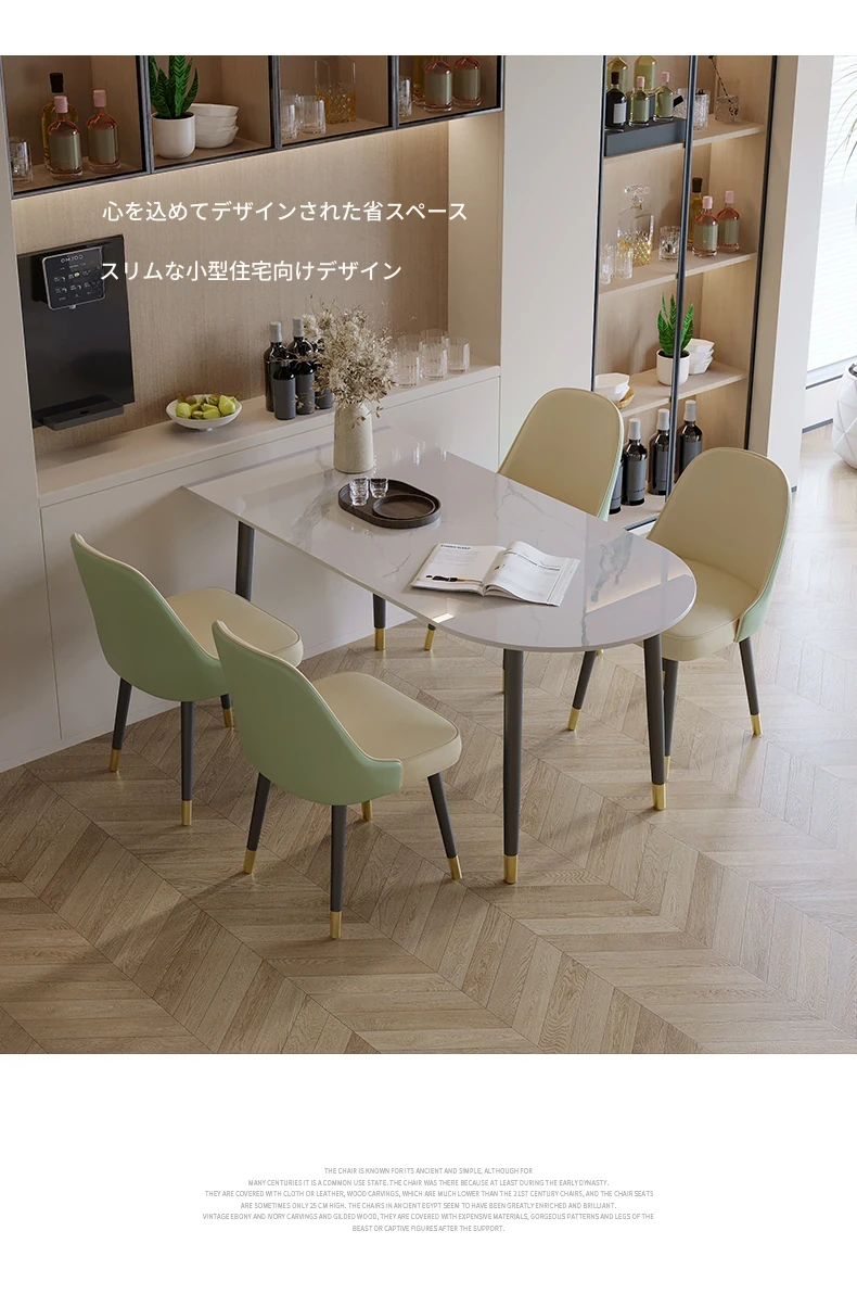光沢のある岩板製のダイニングテーブル、小型住宅向けの北欧風ハーフ円形アイランドテーブル。書き物もできる一体型デザインで、現代的でシンプルなスタイルの家庭用ダイニングテーブル。おしゃれで機能的な空間を演出します!