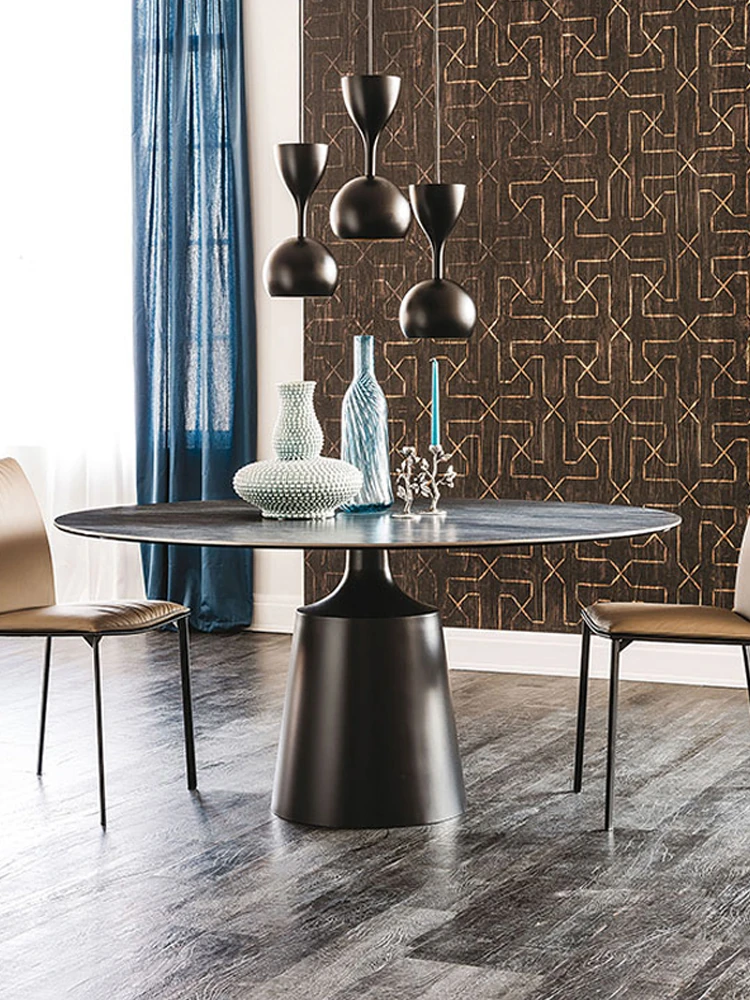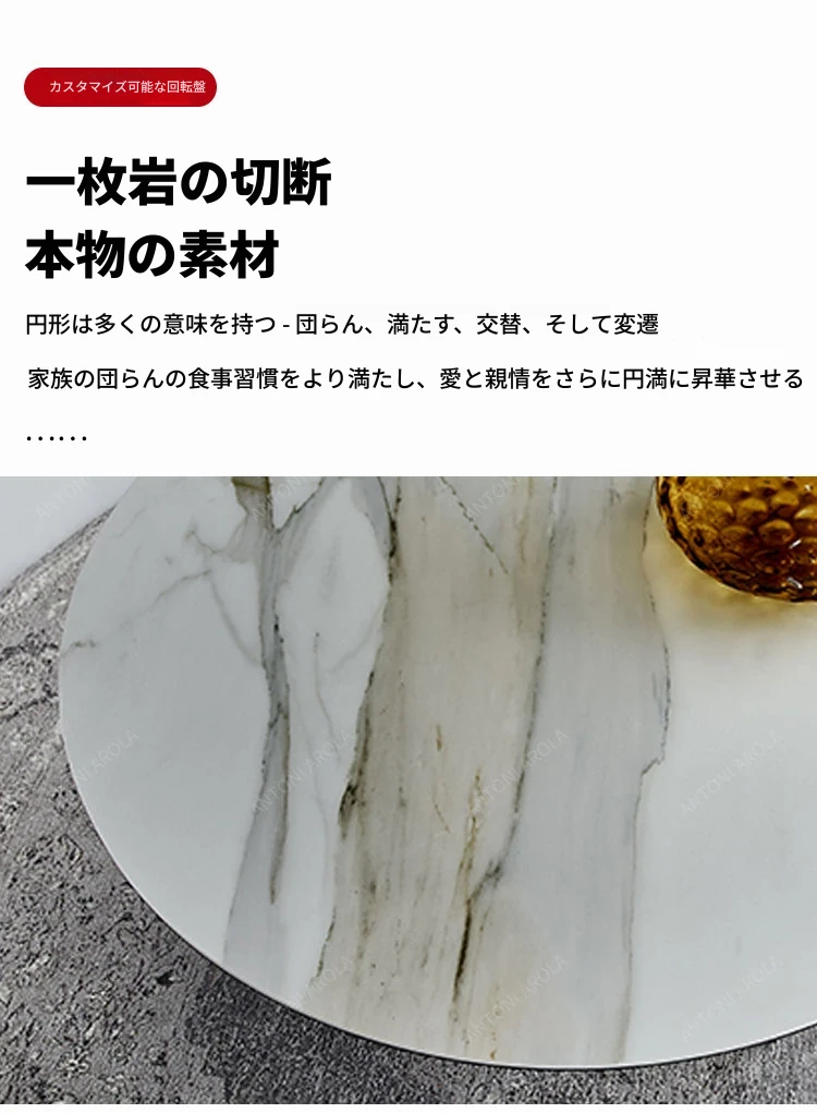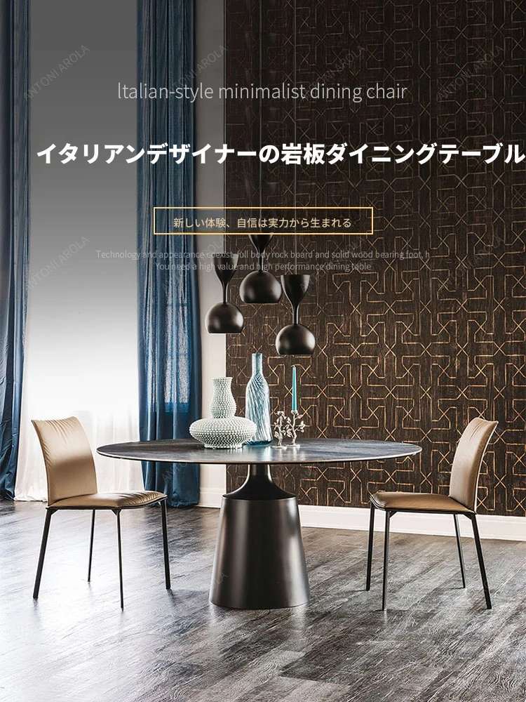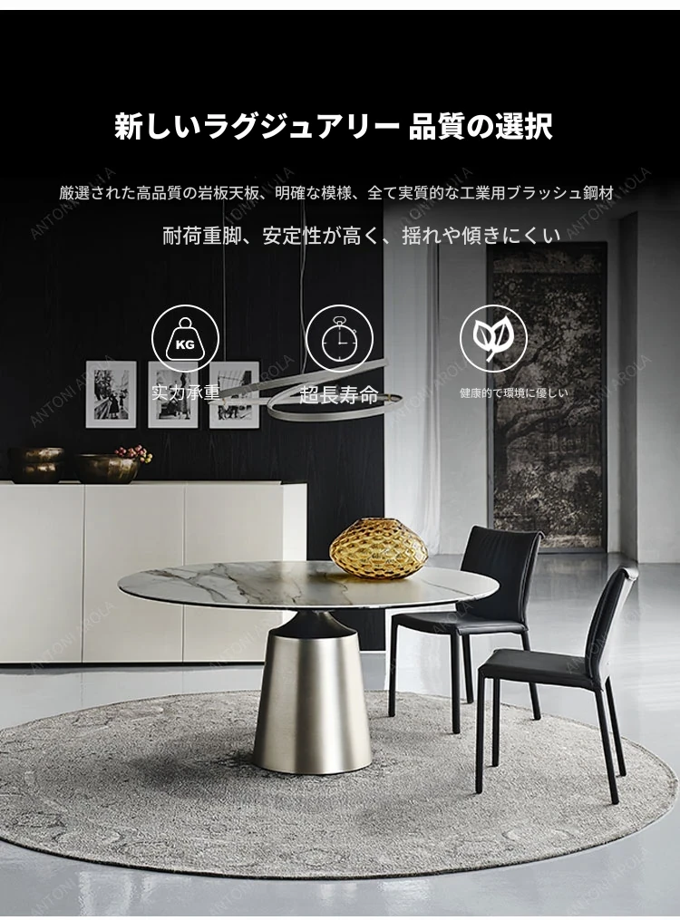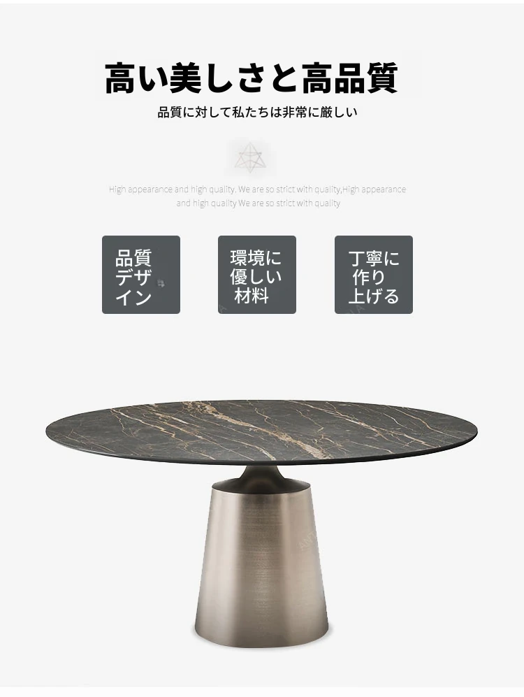 北欧デザインのラグジュアリー軽量岩板丸型ダイニングテーブル|ステンレス製|家庭用|6〜10人用|モダンシンプルスタイルで洗練された食卓を演出!