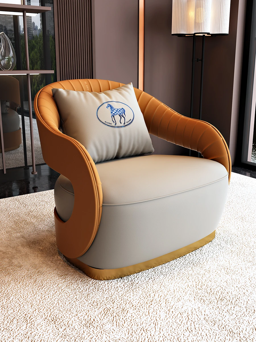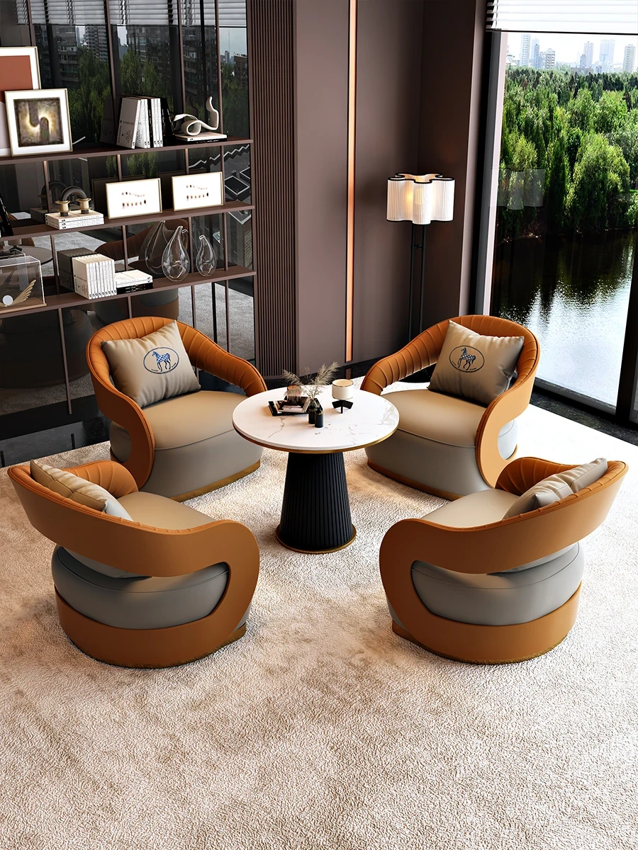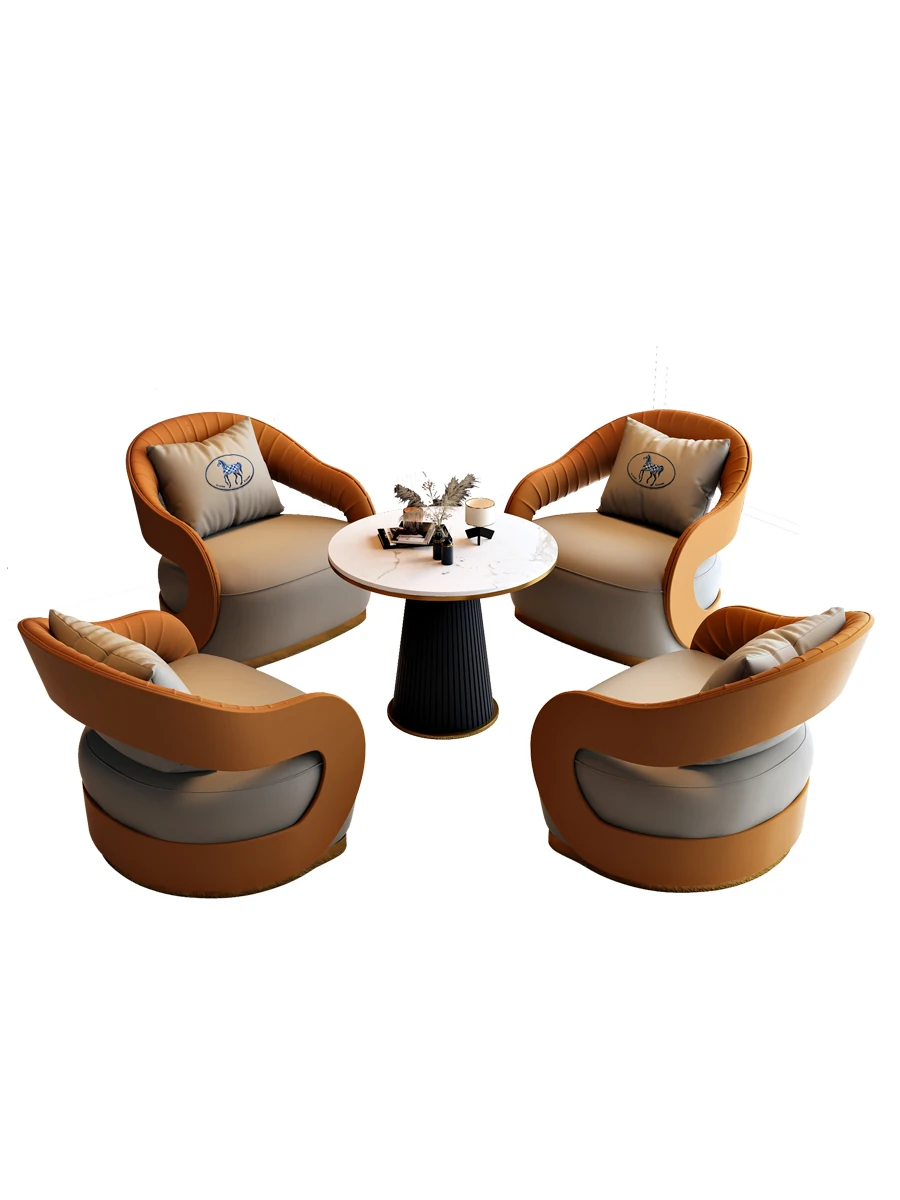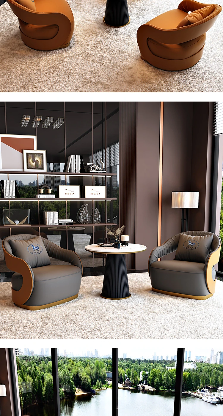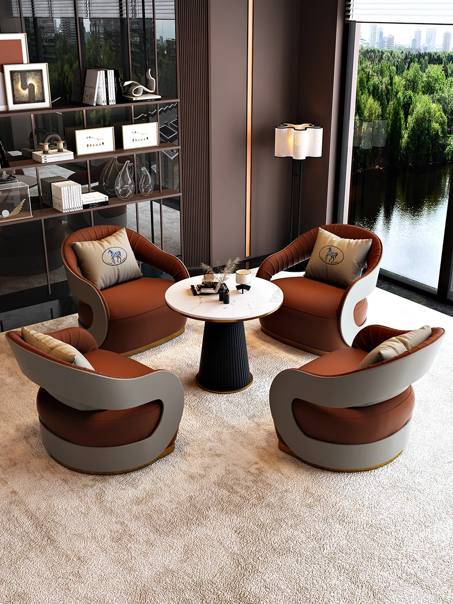 北欧スタイルのレザーソファ|現代美容院・ホテルロビー・販売所に最適なリラックススペース用家具|おしゃれで快適な談話エリアを演出!