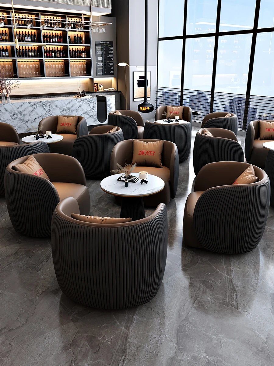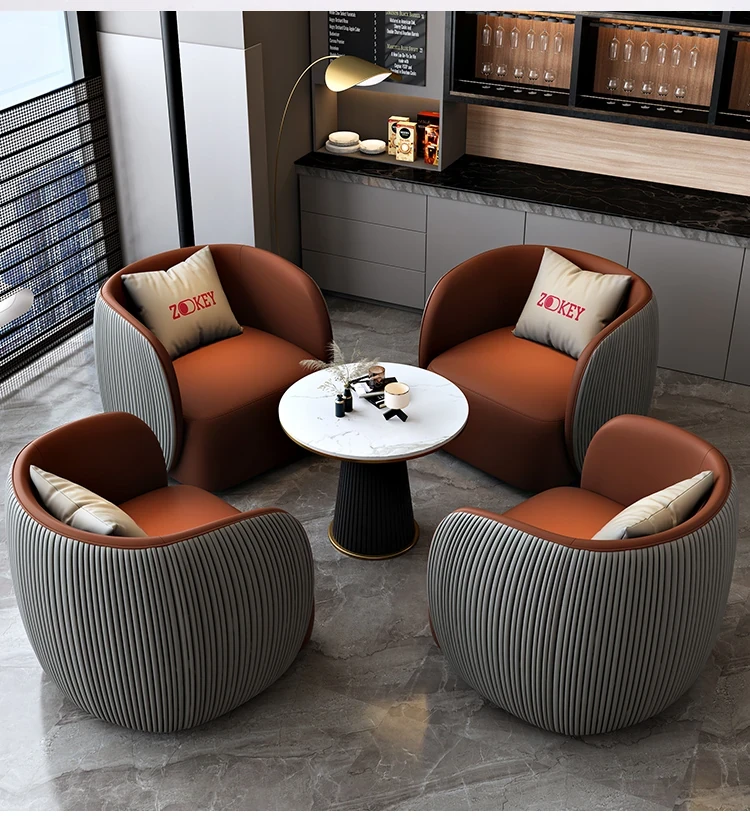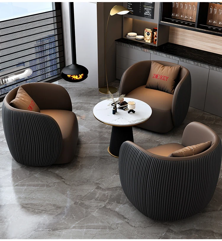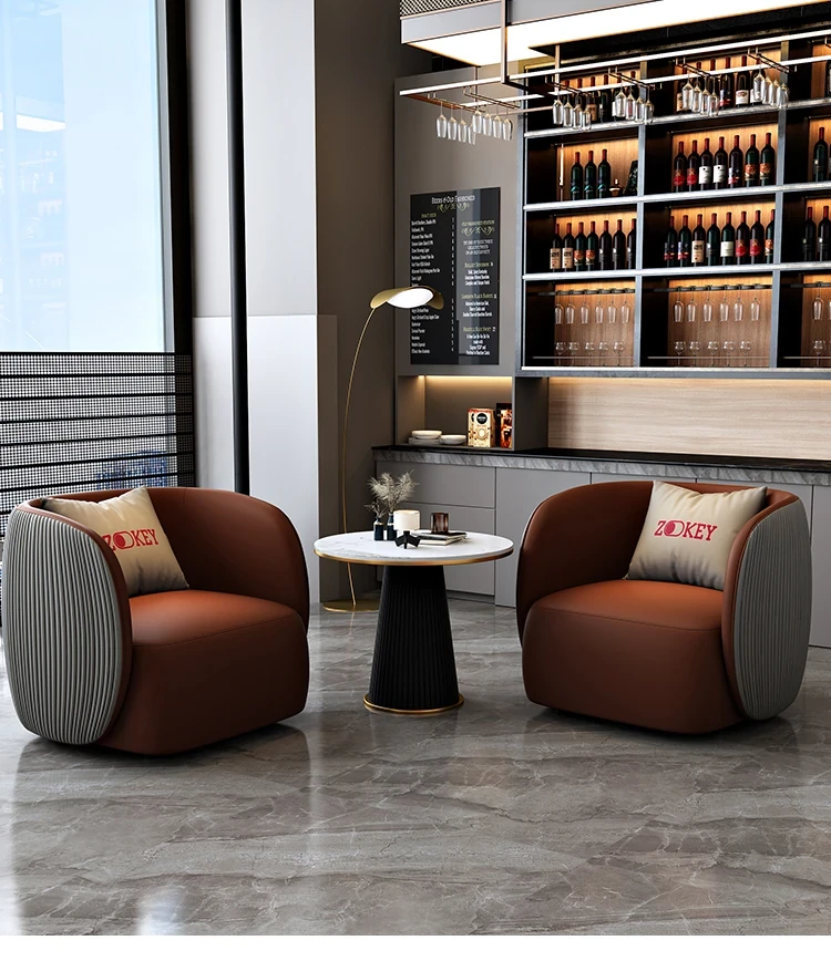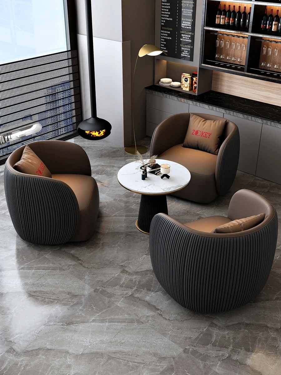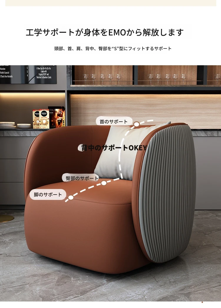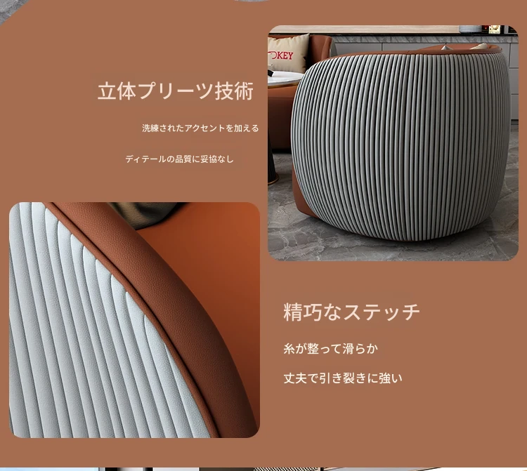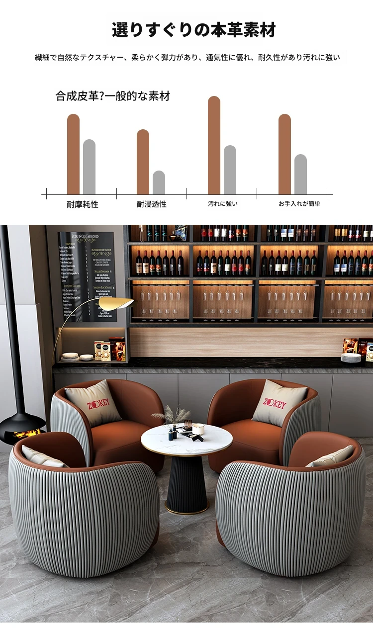 北欧風のレザーソファセット|モダンでラグジュアリーなデザイン|不動産営業所やホテルの休憩エリアに最適な接客用リラックスチェア&テーブル