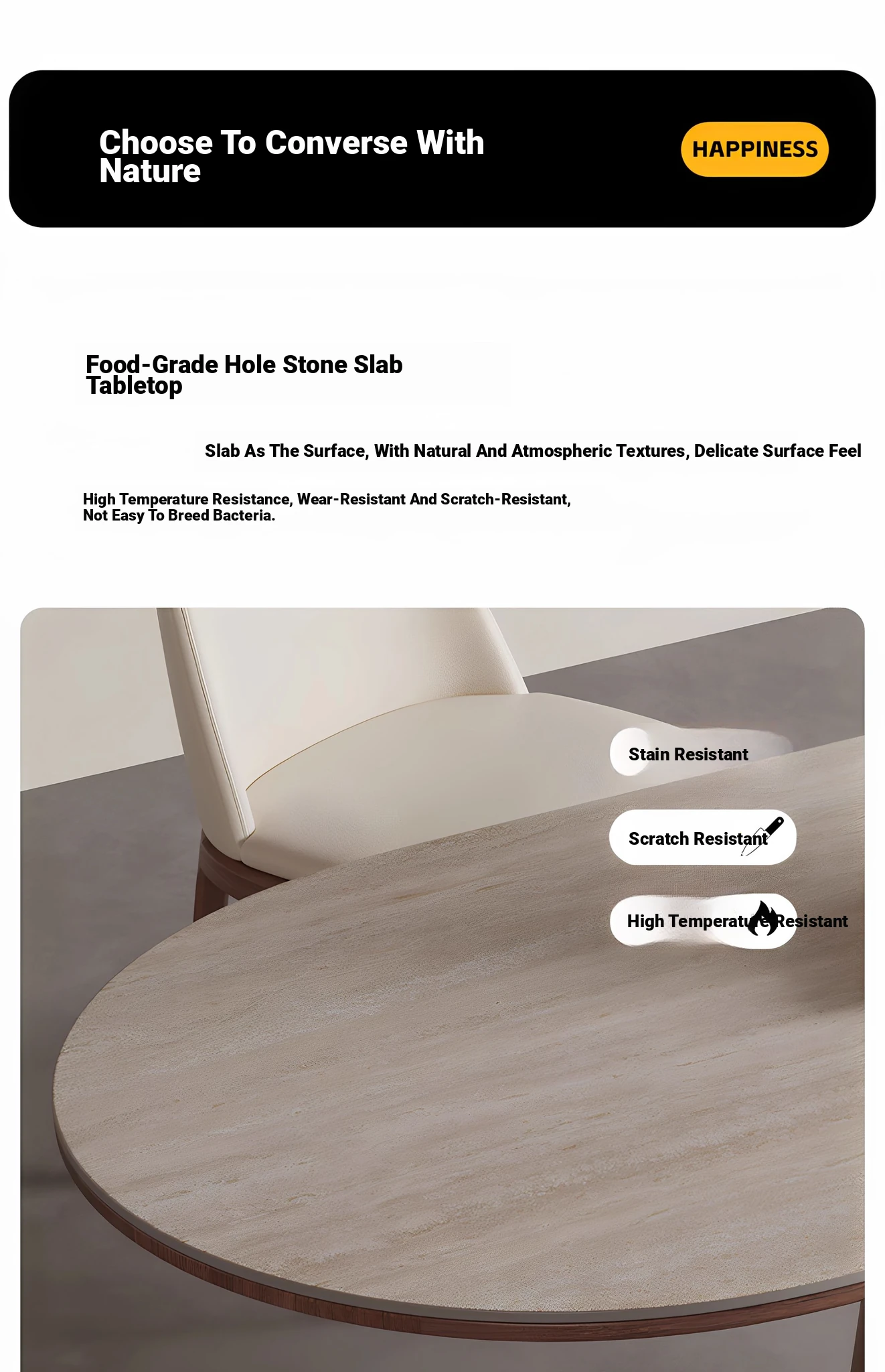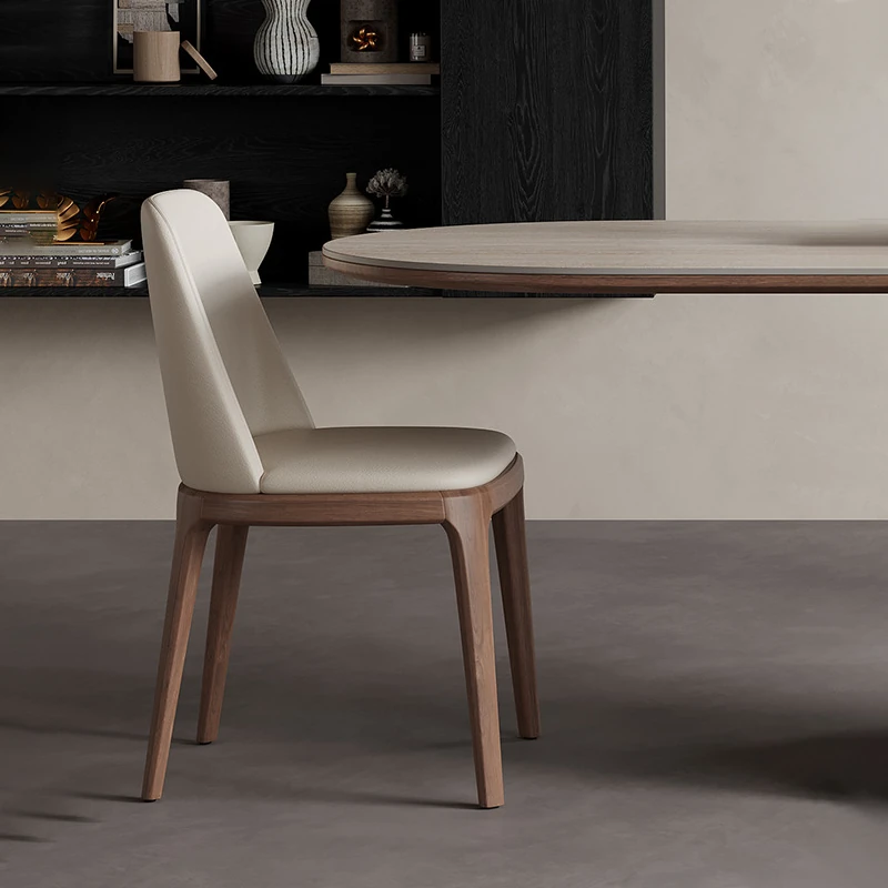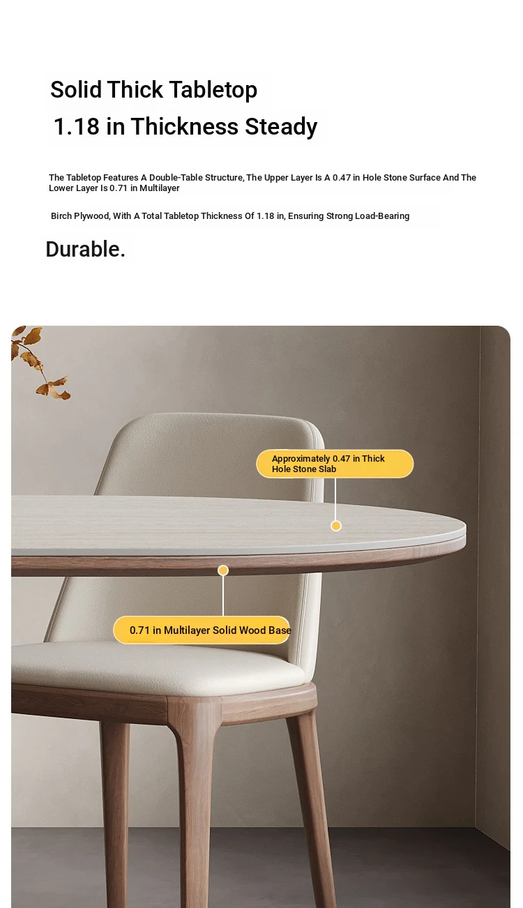 Nordic Solid Wood Dining Table with Rectangular Stone Surface - Elegant Oval Design for Small Spaces, Complete with Stylish Dining Chair Set. Perfect for Home Use!