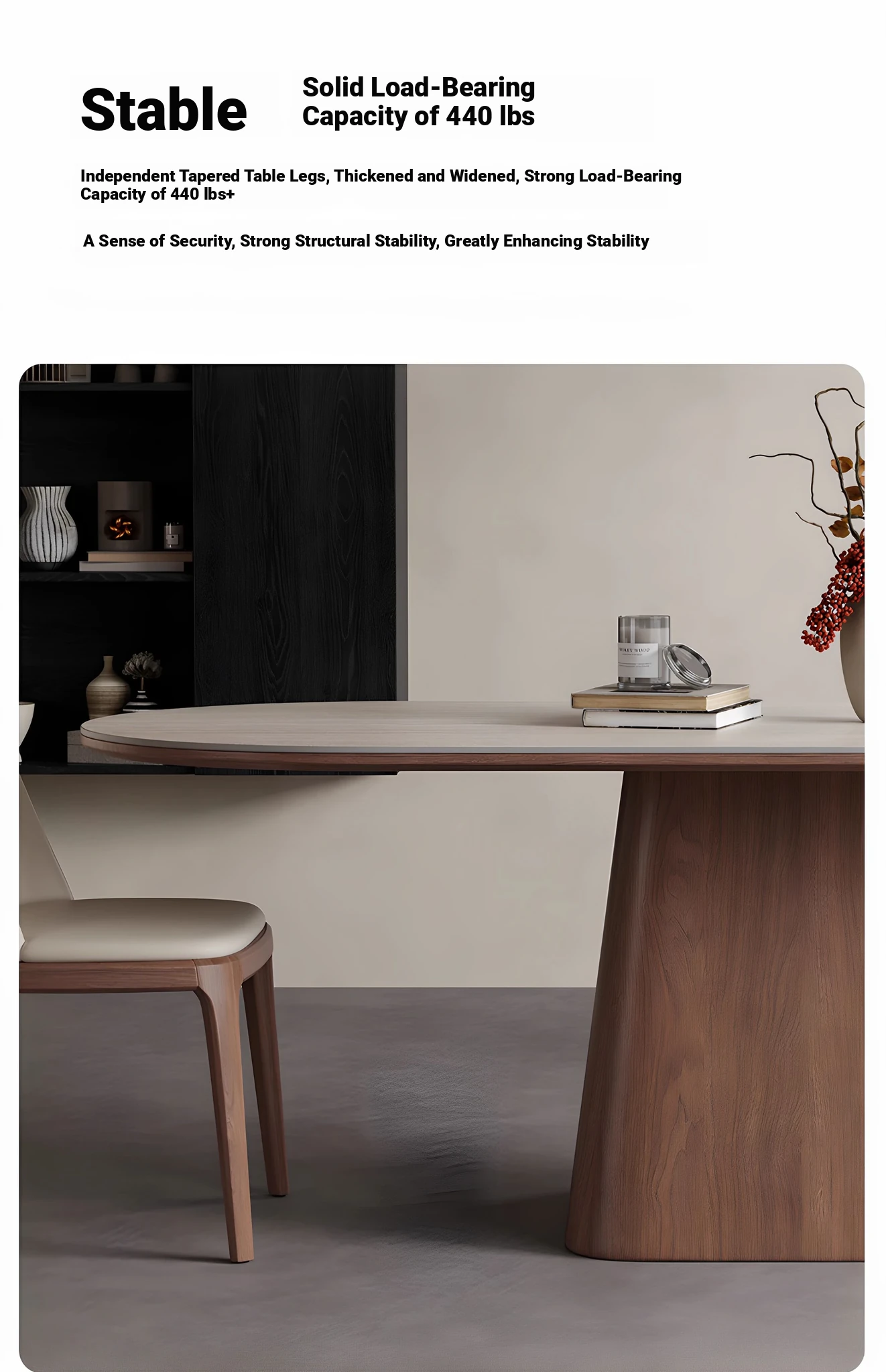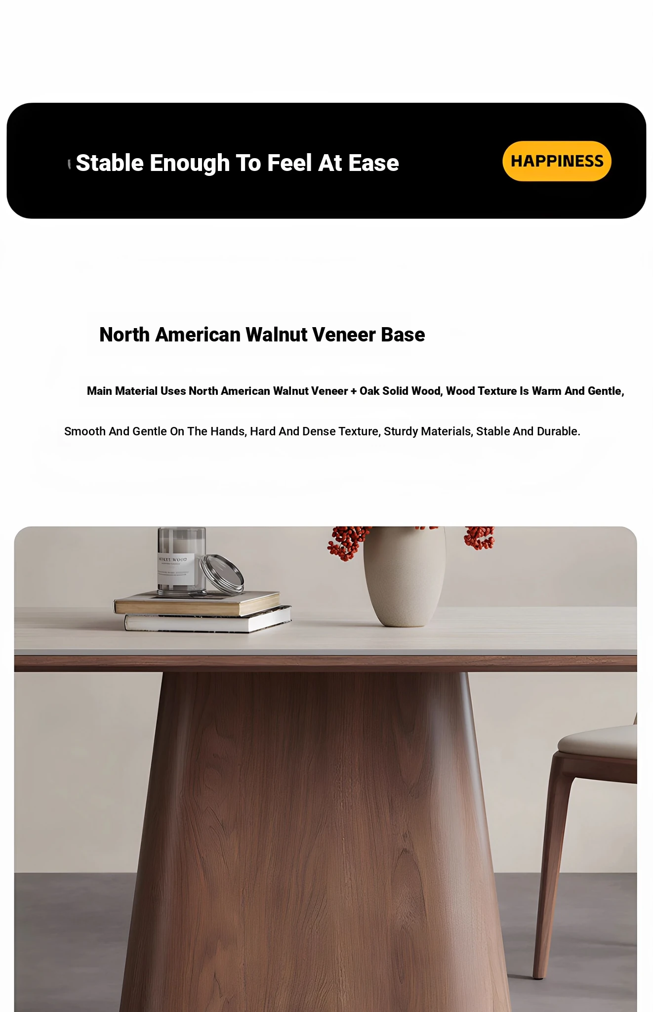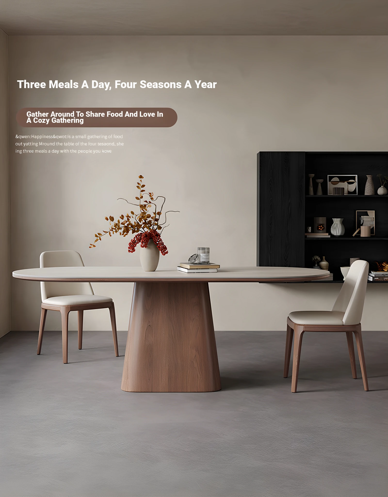 Nordic Solid Wood Dining Table with Rectangular Stone Surface - Elegant Oval Design for Small Spaces, Complete with Stylish Dining Chair Set. Perfect for Home Use!