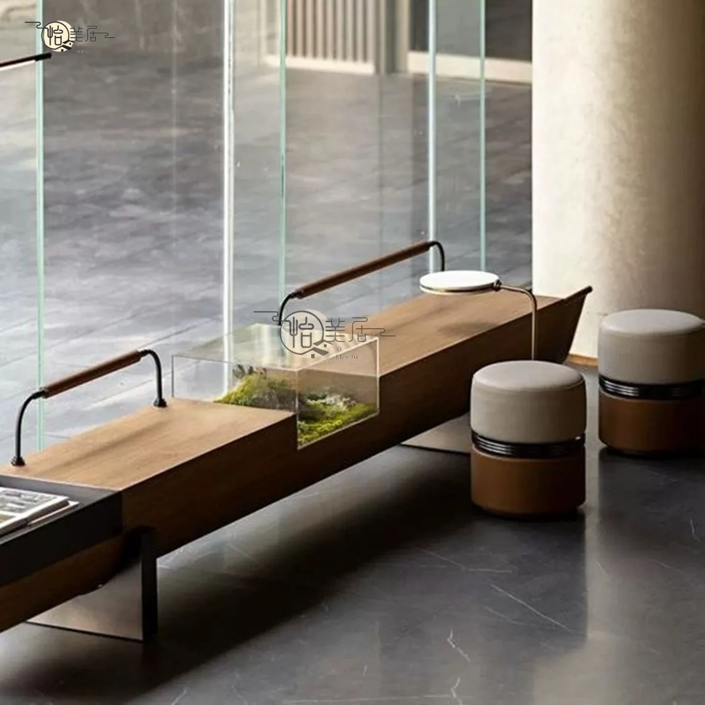 北欧スタイルの天然木製ソファベンチ - デザイナー推奨!ショールームやホテルロビーに最適な観賞用ベンチで、リラックスしたひとときを提供します。長時間座っても快適なデザインです。