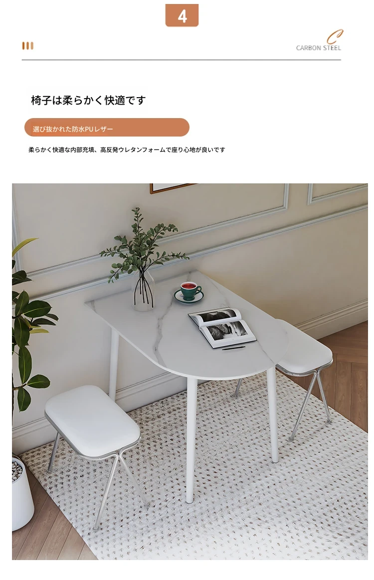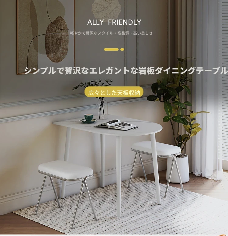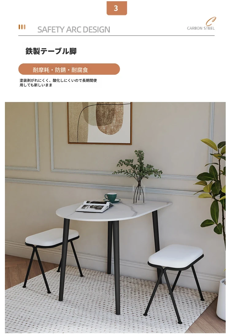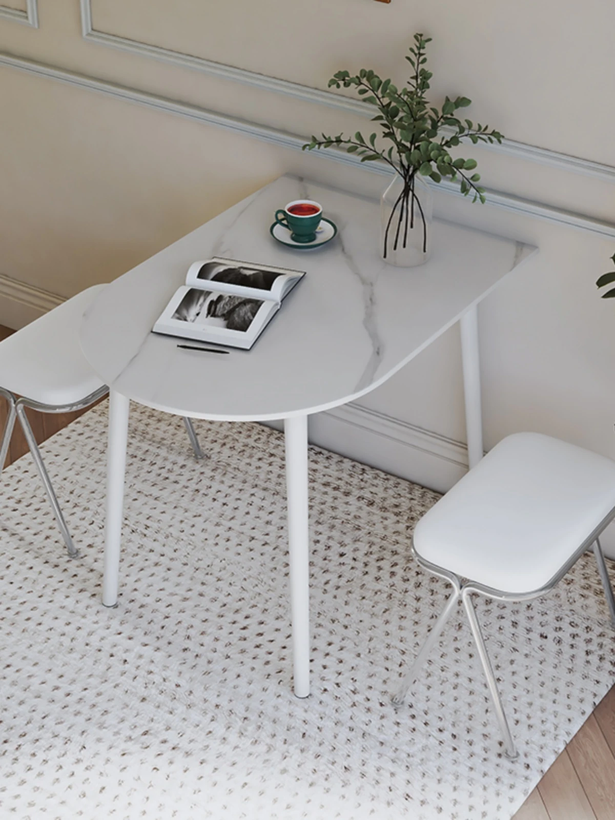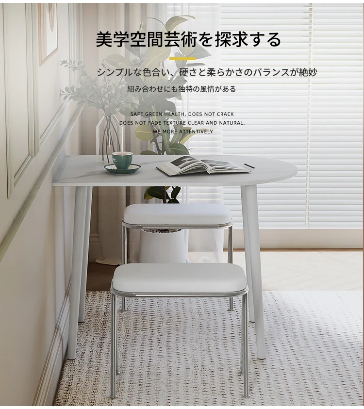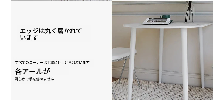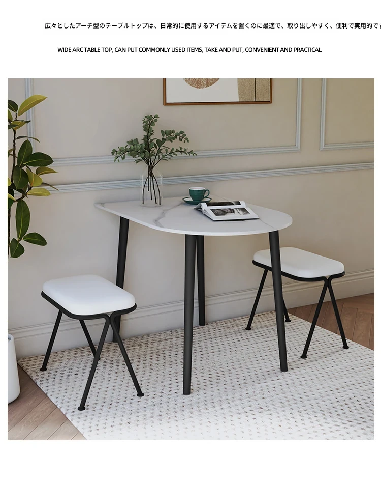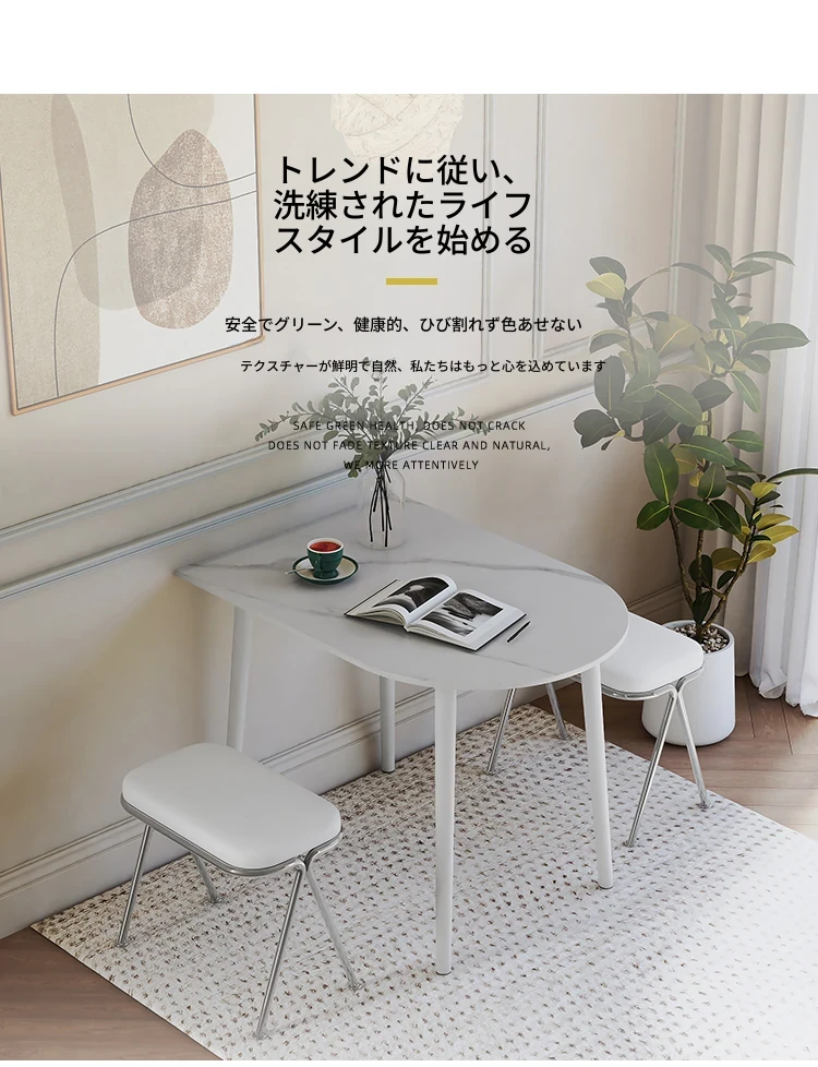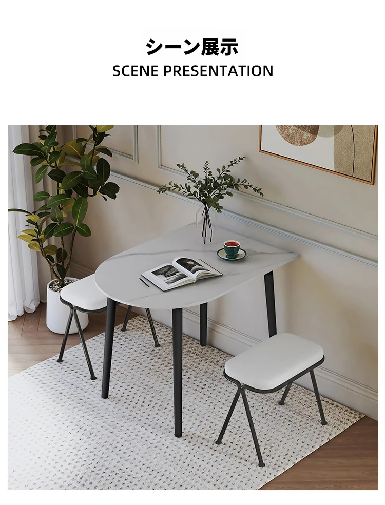 インスタ映えする北欧風の小型ハーフ円形ホワイトダイニングテーブル!スタイリッシュな岩板素材を使用した、シンプルでモダンなデザイン。ダイニングや書斎にもぴったり!おしゃれで機能的な空間を演出します。