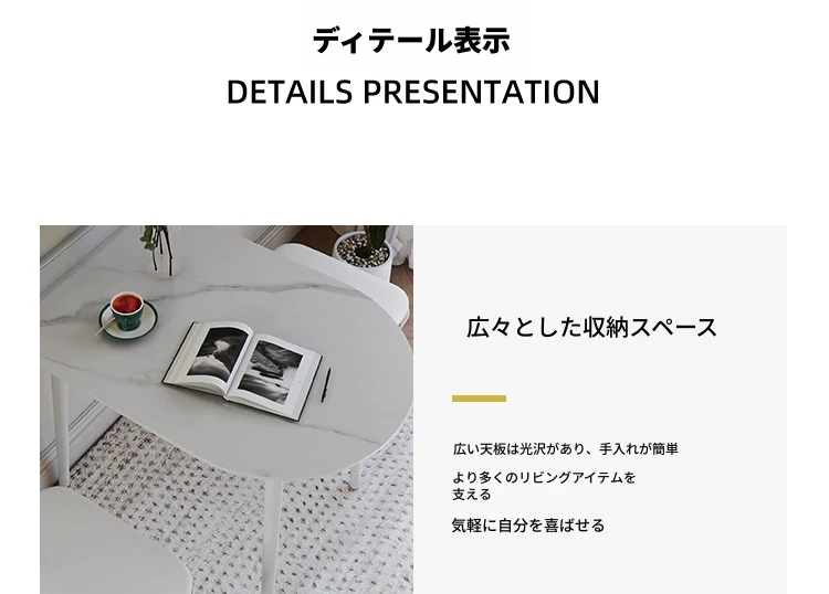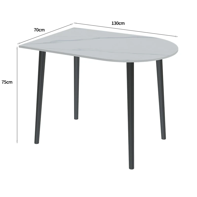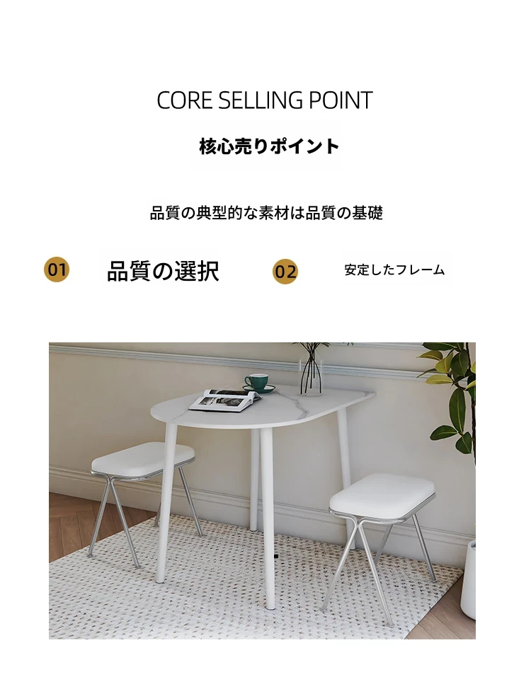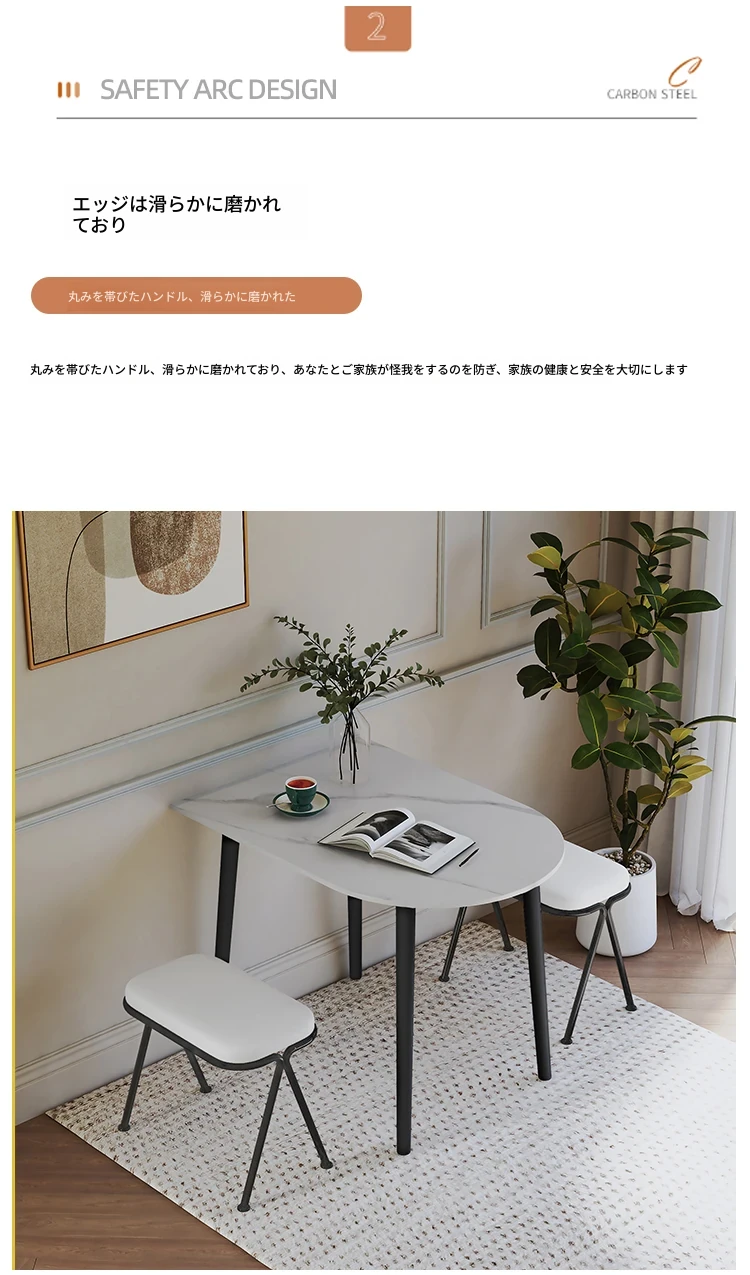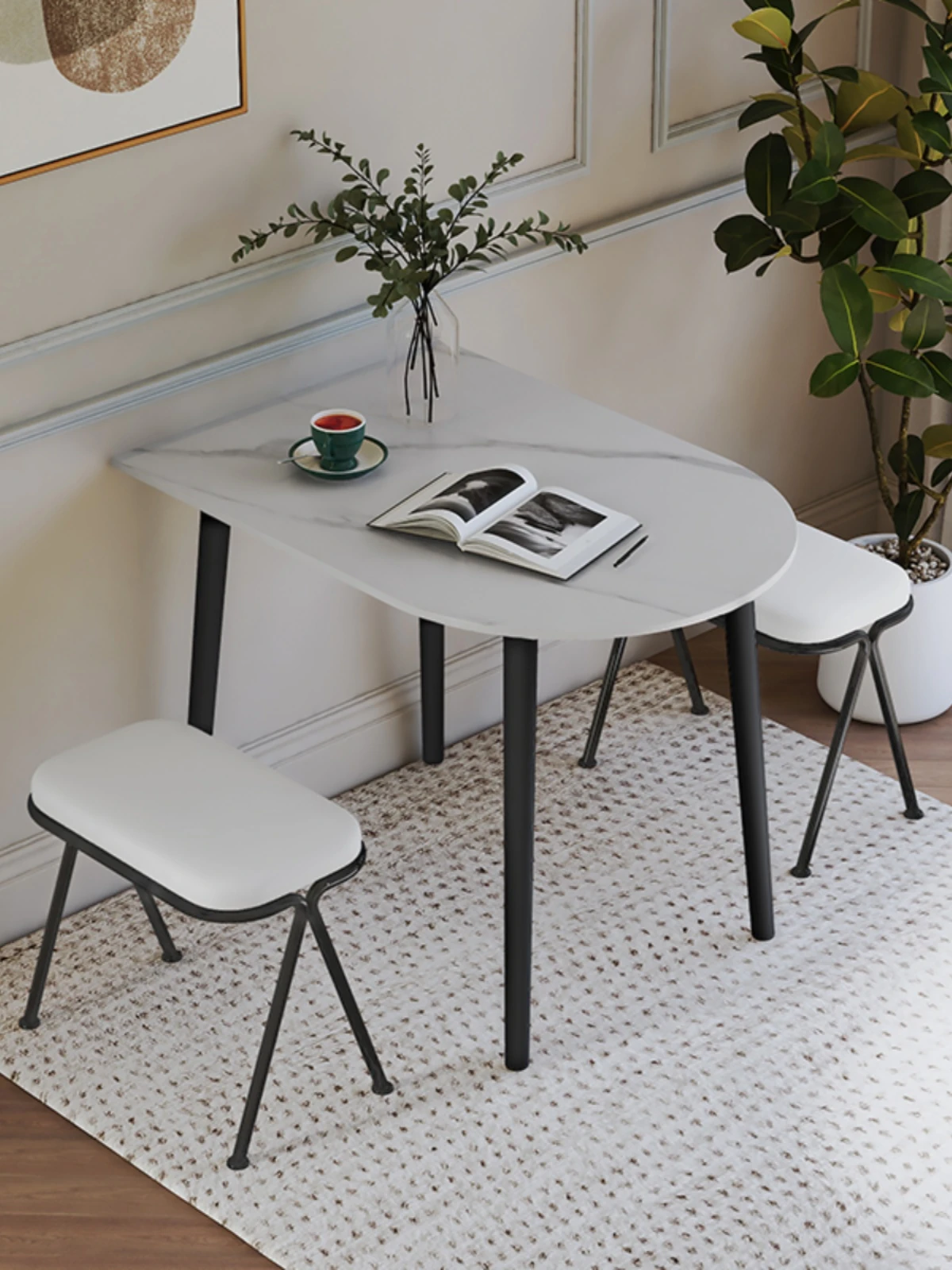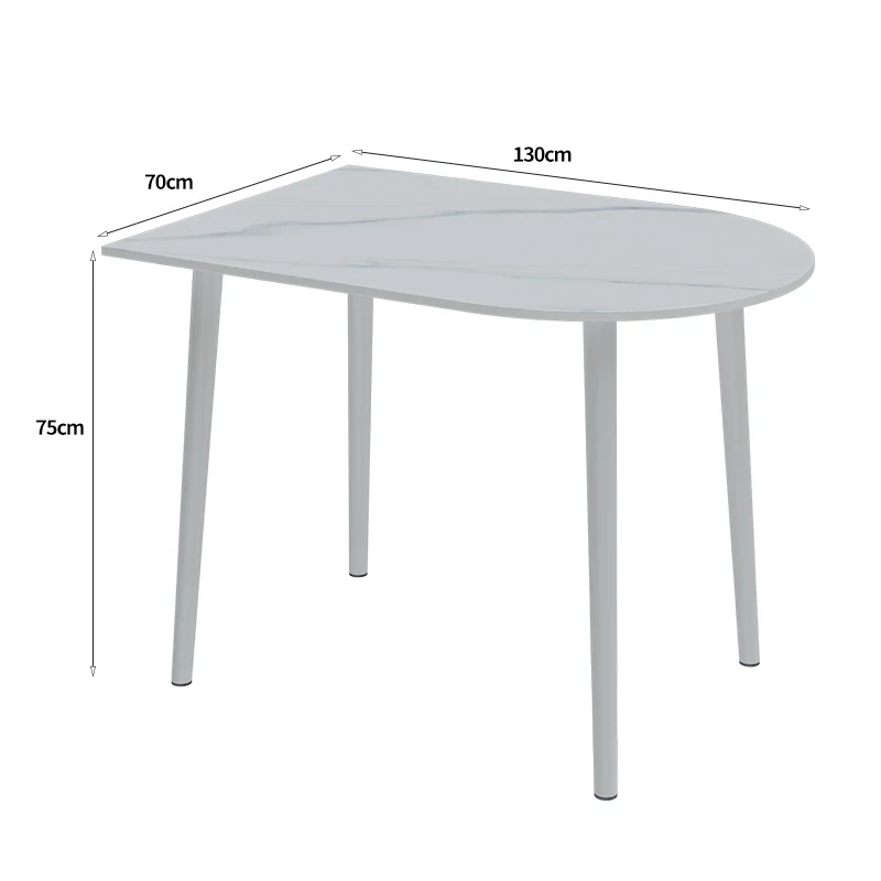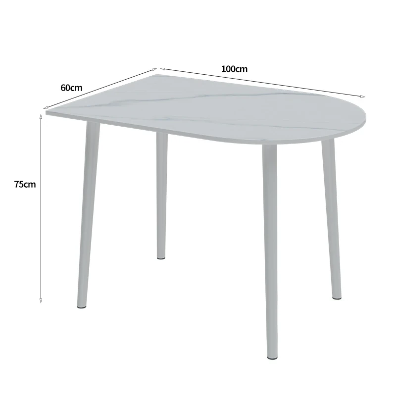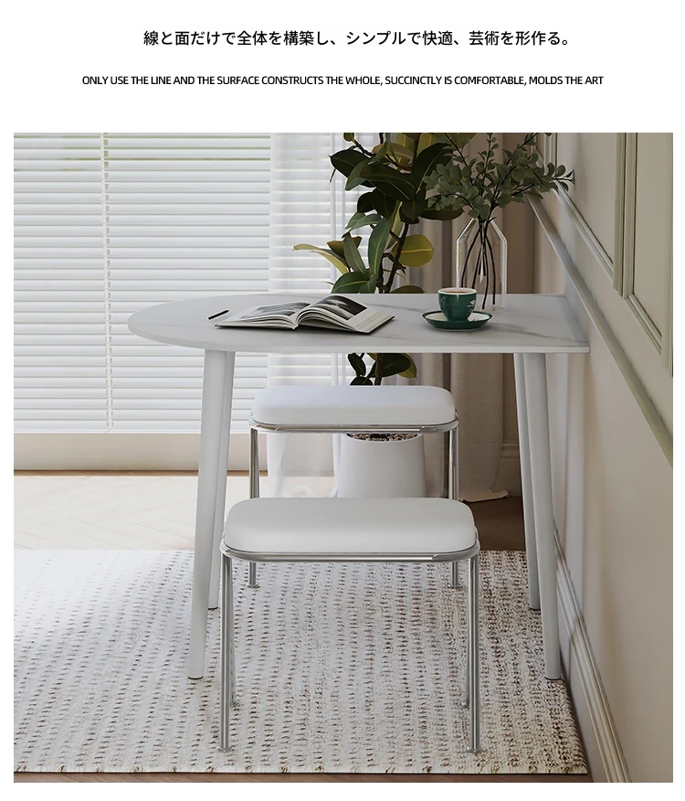 インスタ映えする北欧風の小型ハーフ円形ホワイトダイニングテーブル!スタイリッシュな岩板素材を使用した、シンプルでモダンなデザイン。ダイニングや書斎にもぴったり!おしゃれで機能的な空間を演出します。