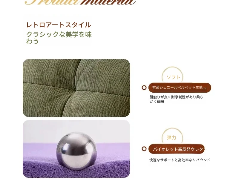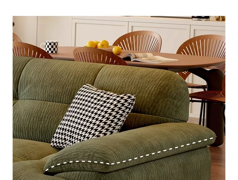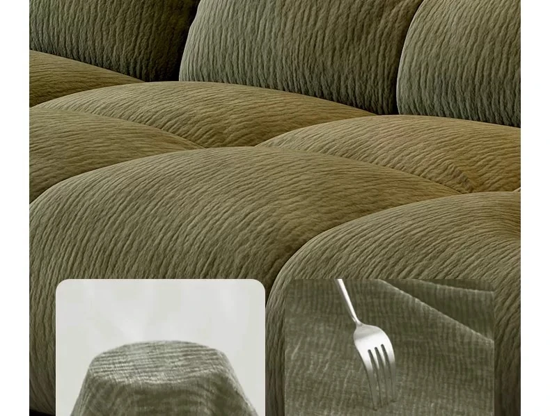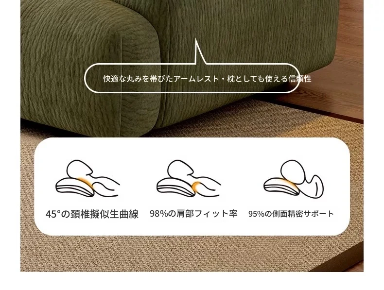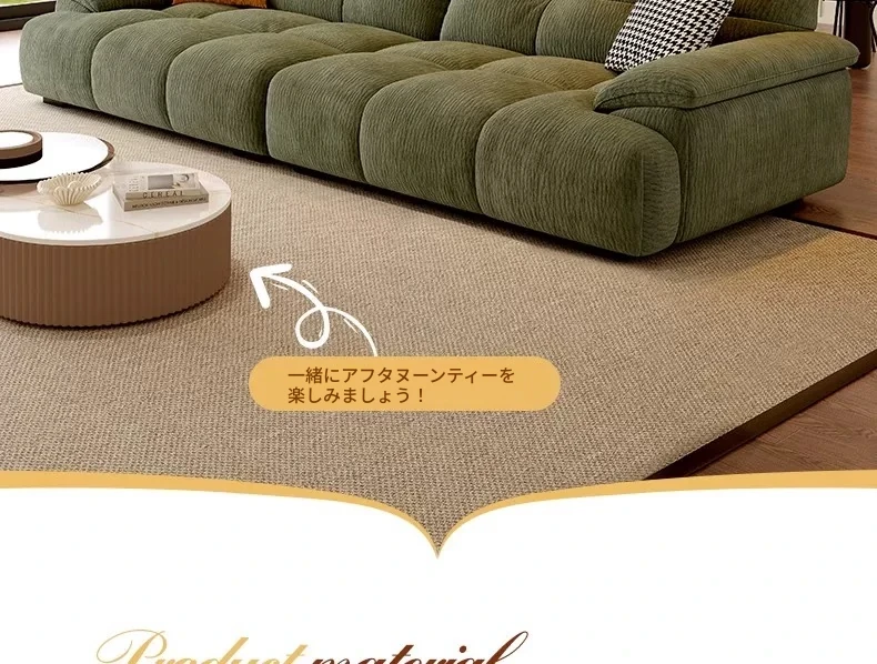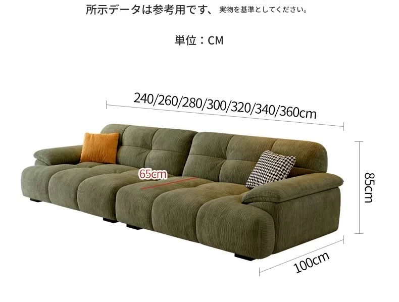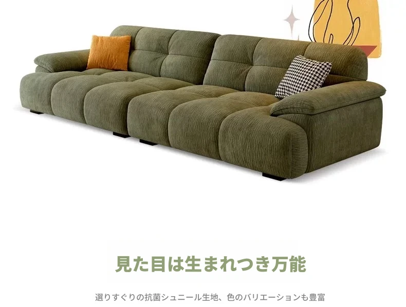 レトロクリーム風のファブリックソファ!小型リビングにぴったりな雲のような広々座面、深いシェニール素材のグリーンストレートソファ!新作登場!快適さとおしゃれさを両立した理想の家具です。