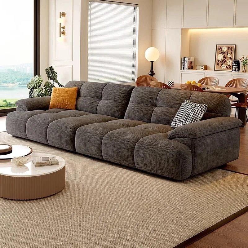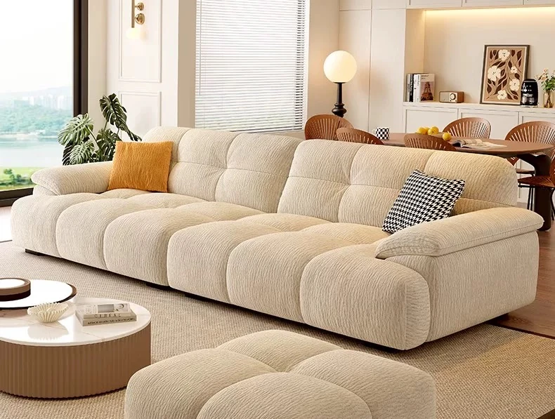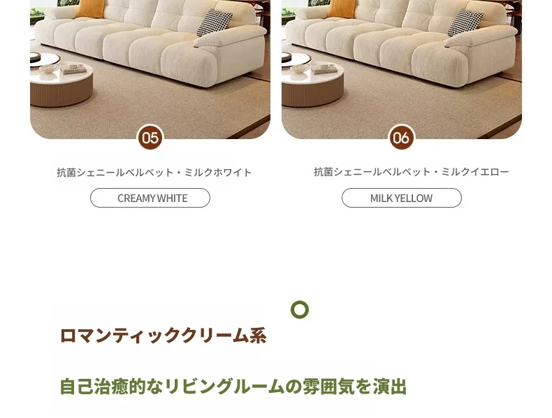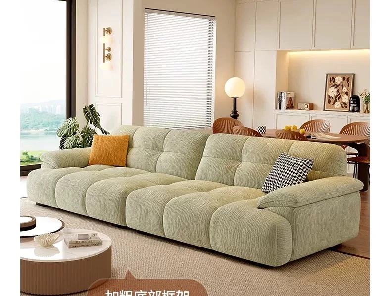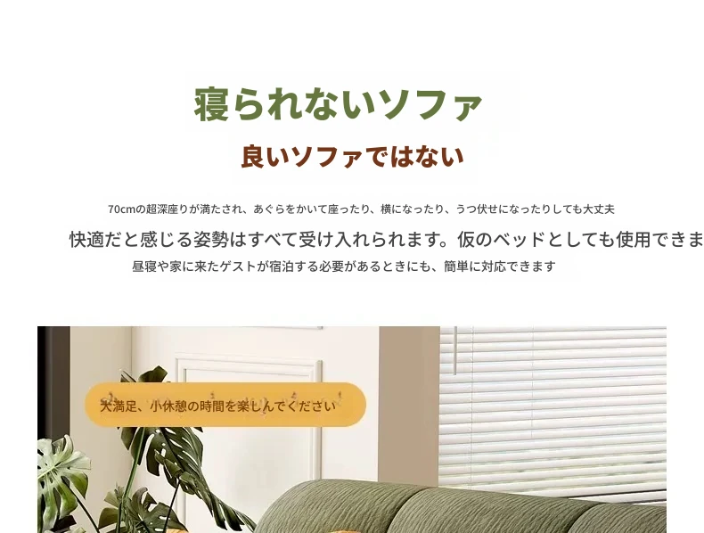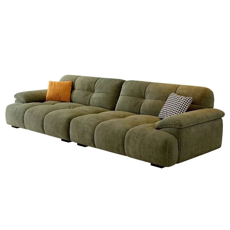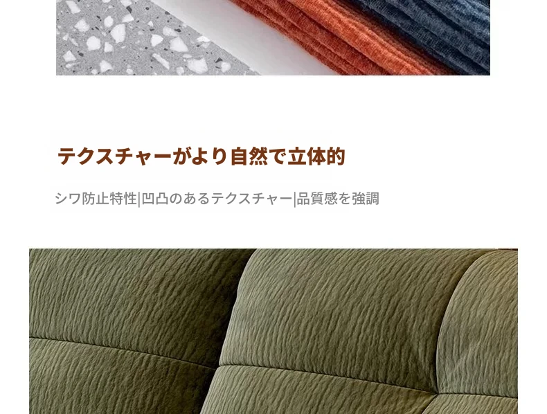 レトロクリーム風のファブリックソファ!小型リビングにぴったりな雲のような広々座面、深いシェニール素材のグリーンストレートソファ!新作登場!快適さとおしゃれさを両立した理想の家具です。