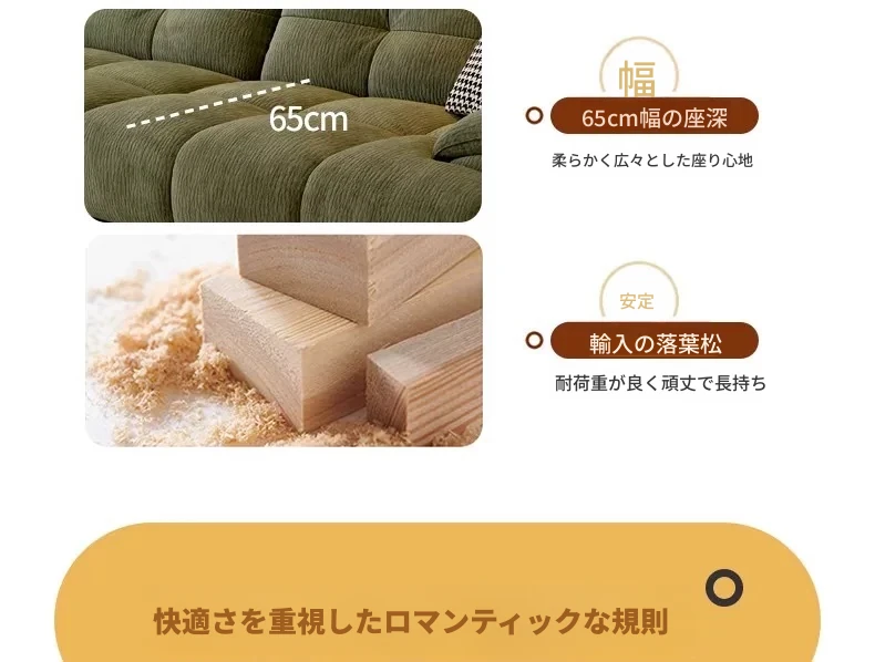 【スタンダード版-柔らかさと硬さのバランス】シェニール生地(45D高密度スポンジ+厚手の落葉松無垢材フレーム)