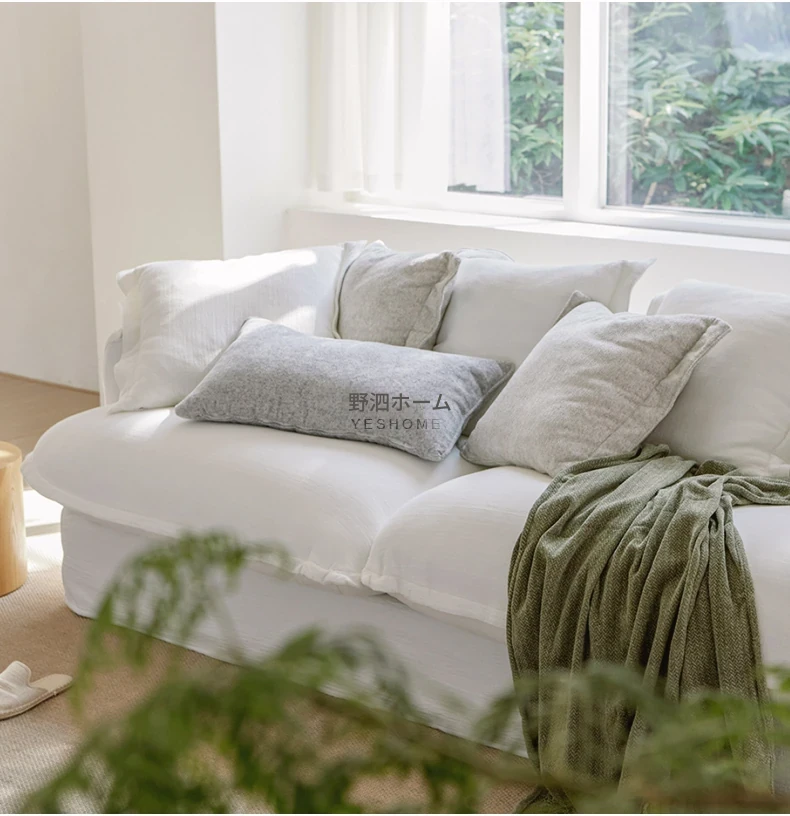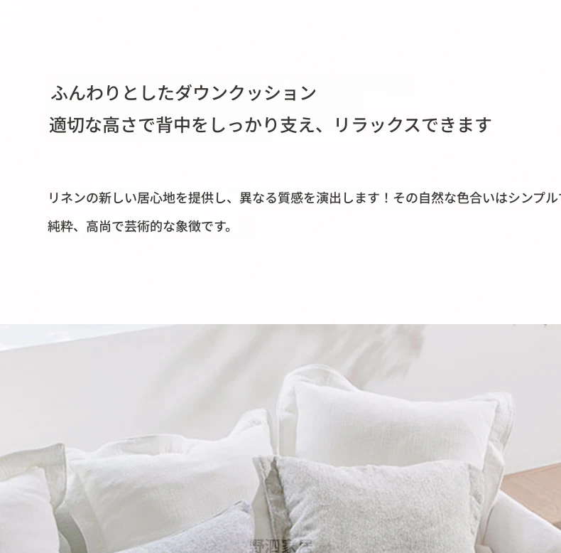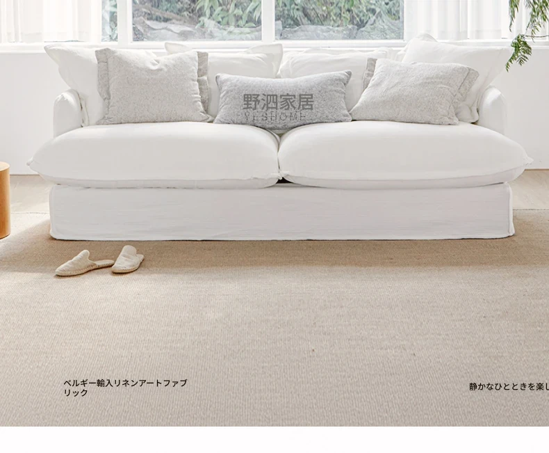 ソレイユ雲端フレンチスタイル抱擁ソファ|洗えるコットンリネン|リビングに最適な小型3人掛けダウンソファ!おしゃれで快適な空間を実現!