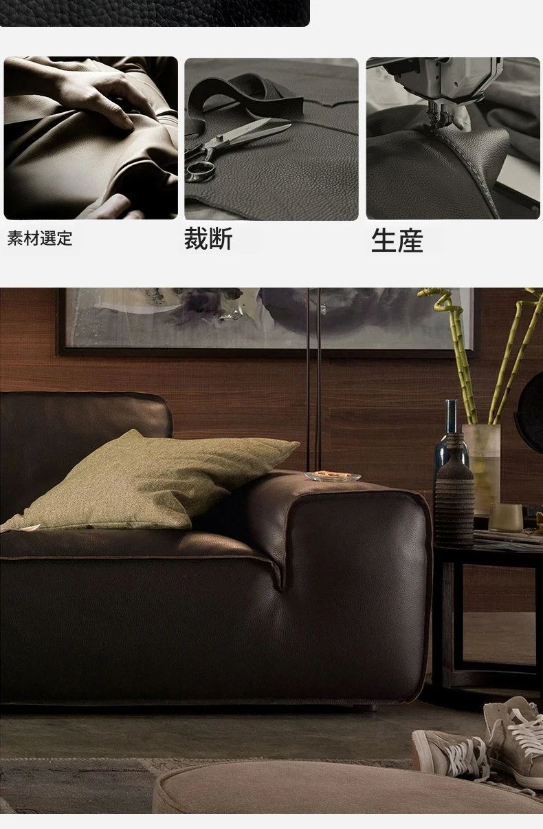 大黒牛直排リビング本革ソファ イタリアンミニマルデザイン 上質なトップグレイン牛革使用 リビングにぴったりなサイズの豆腐ブロックソファで、洗練された空間を演出します。
