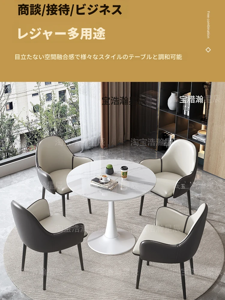 優雅なデザインの岩板サイドテーブル - 商談や接客に最適!カフェ、バルコニー、ホテル、モデルルーム、美容院の休憩スペースにぴったりな小さな丸テーブルです。おしゃれで実用的なアイテムで、心地よい空間を演出します。