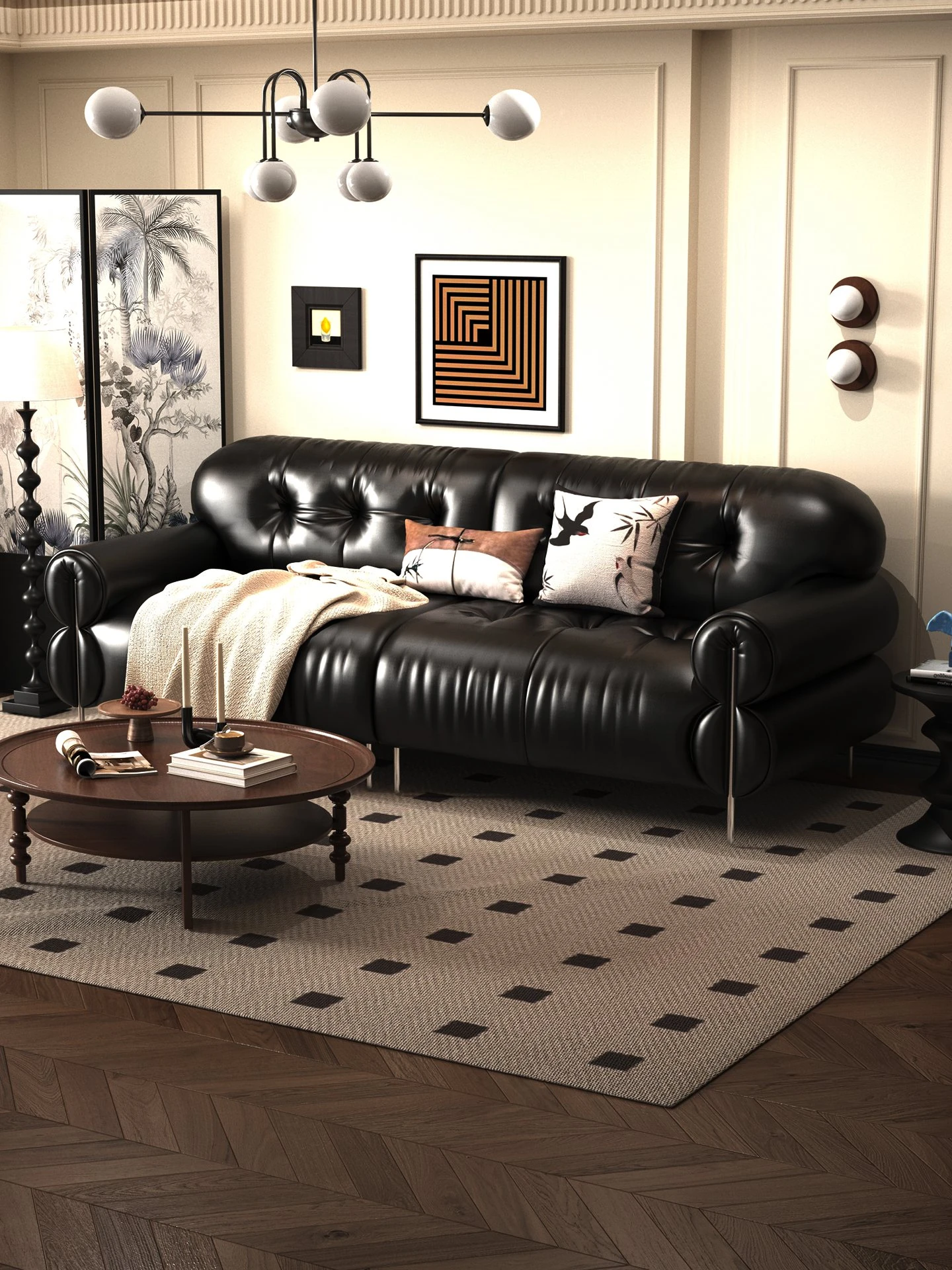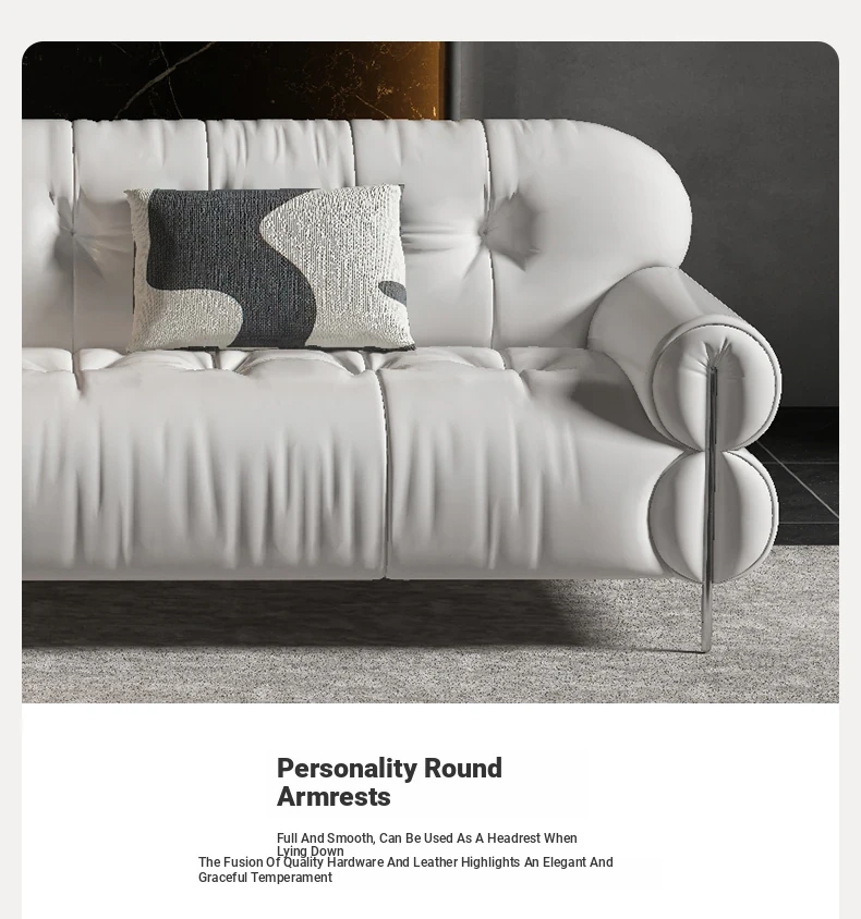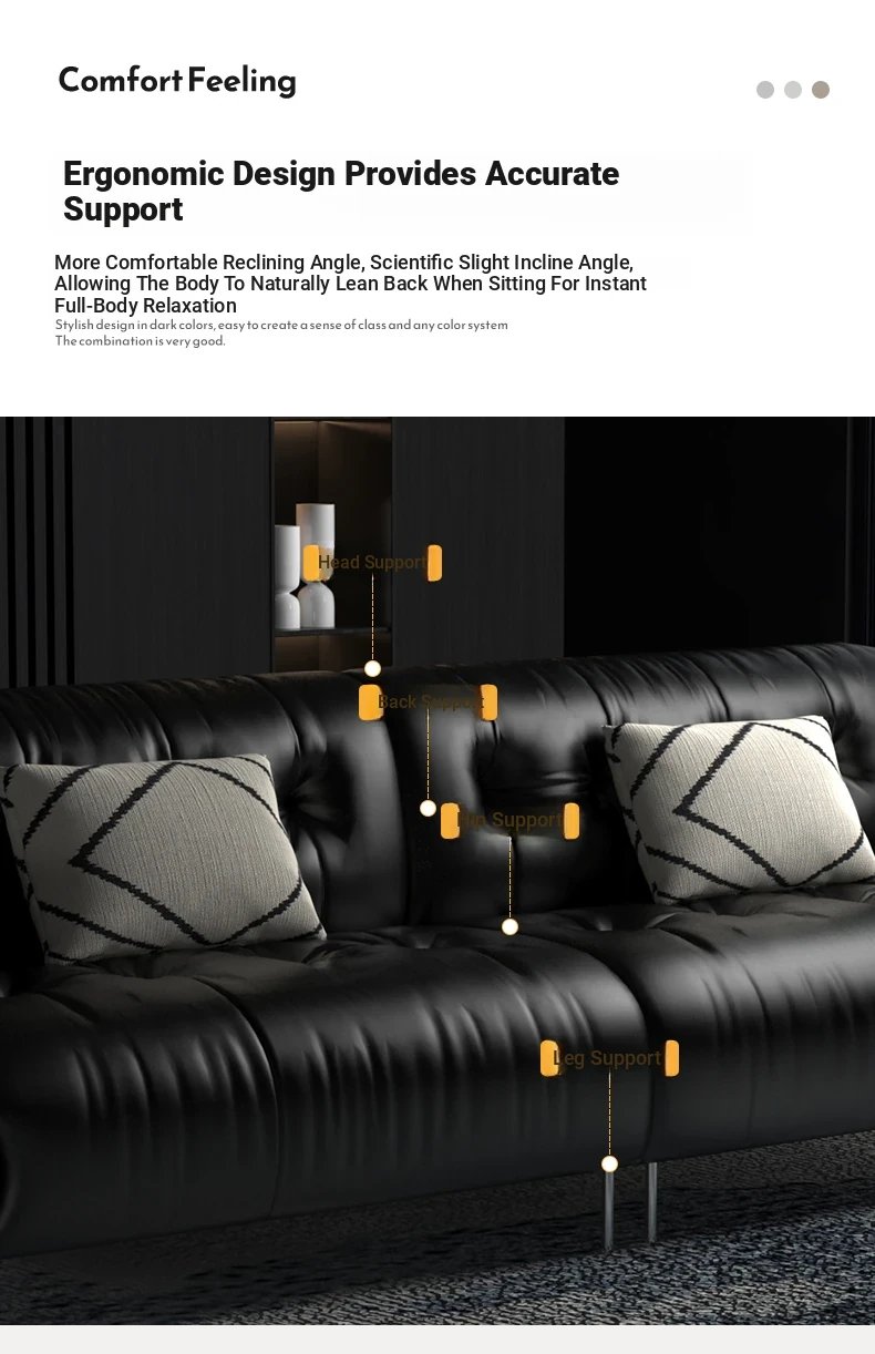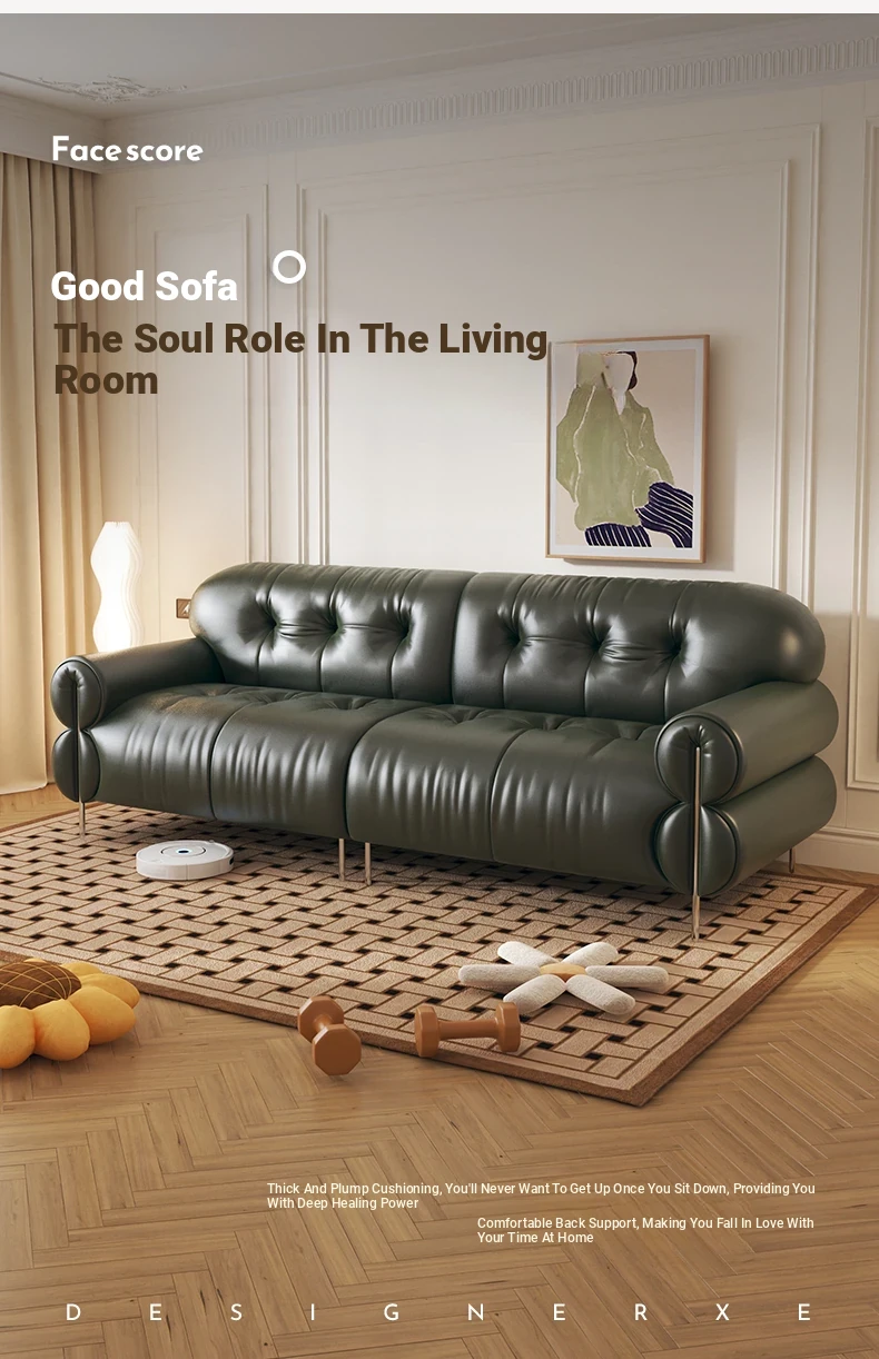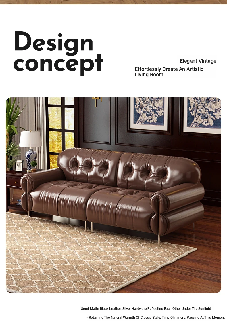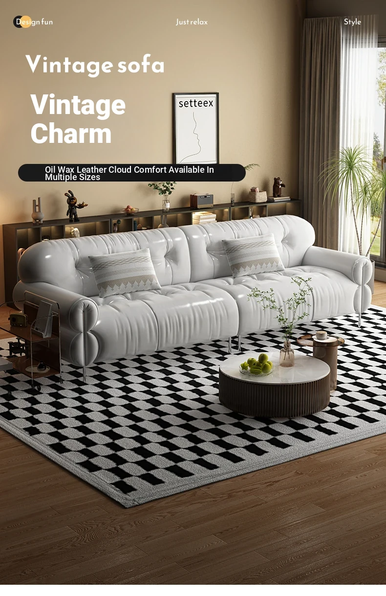 Trendy Oil-Wax Leather French Vintage Retro Cloud Sofa for Living Room & Beauty Salon Reception - Stylish Black Sugar Design for a Cozy Ambiance