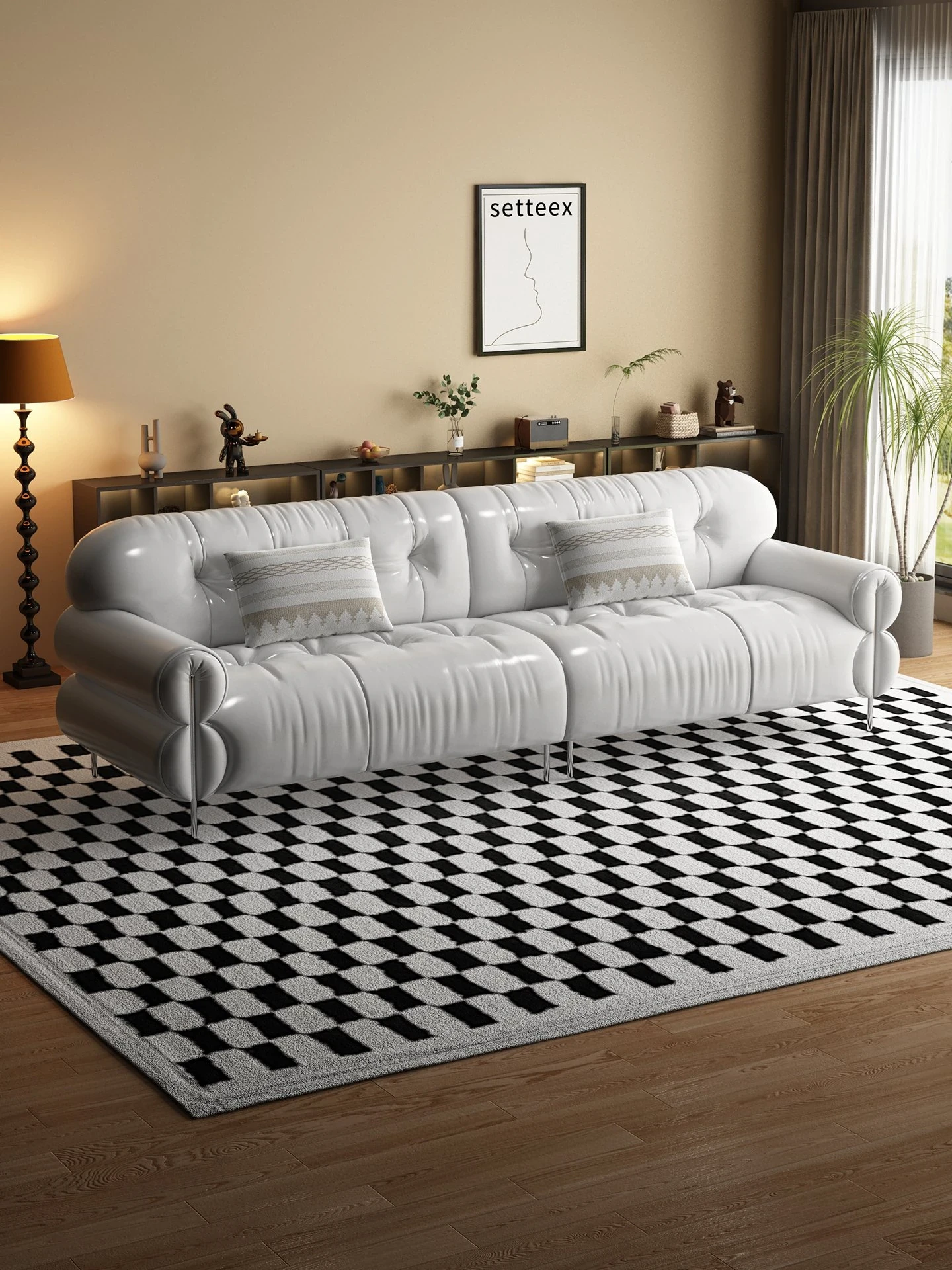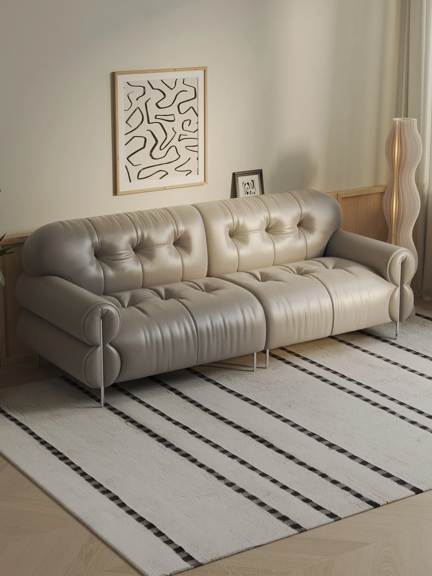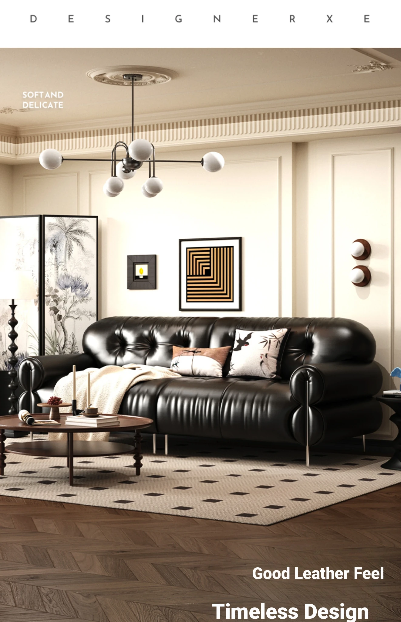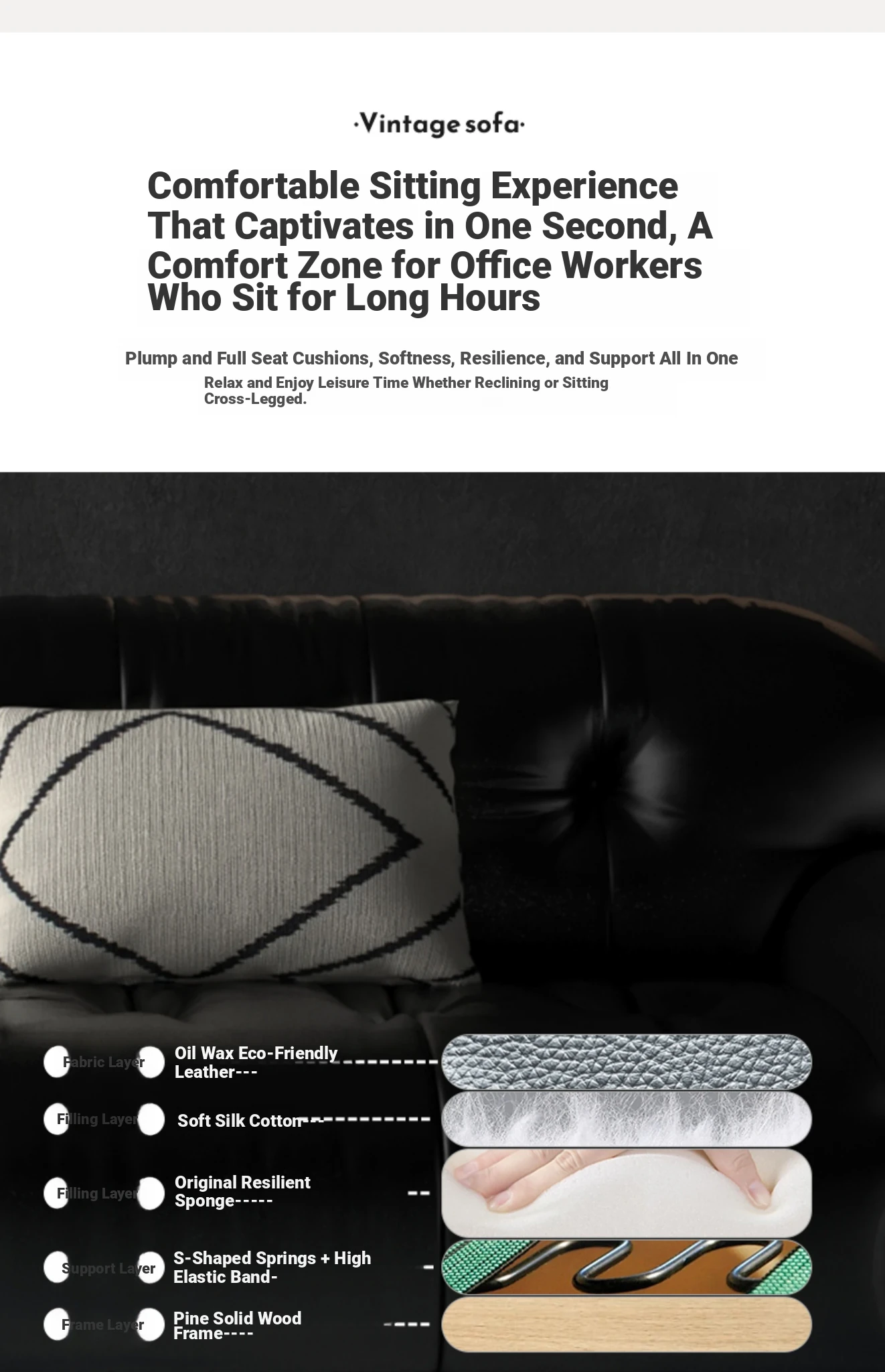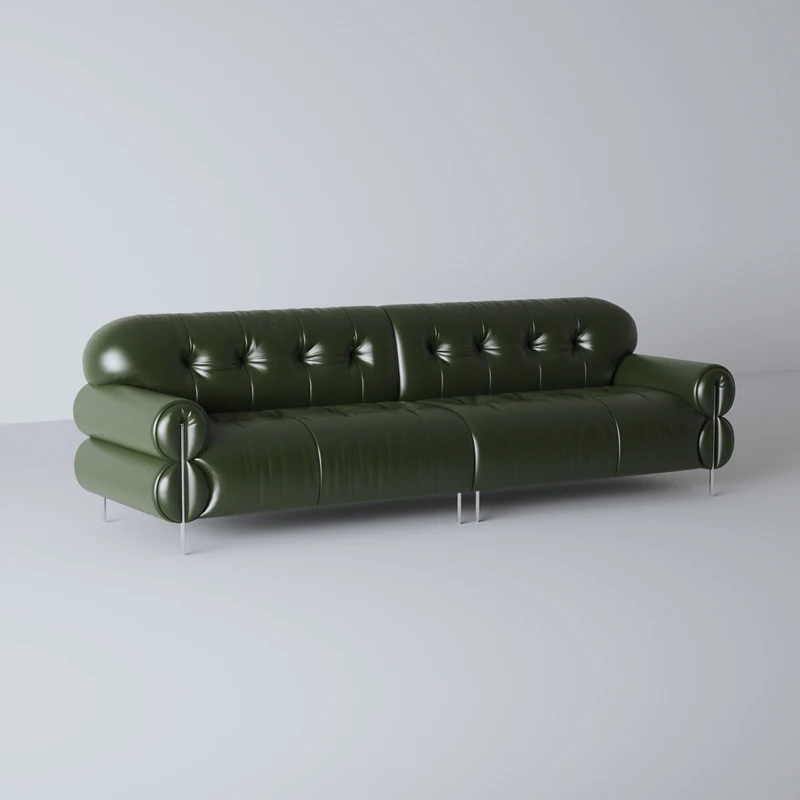 Trendy Oil-Wax Leather French Vintage Retro Cloud Sofa for Living Room & Beauty Salon Reception - Stylish Black Sugar Design for a Cozy Ambiance