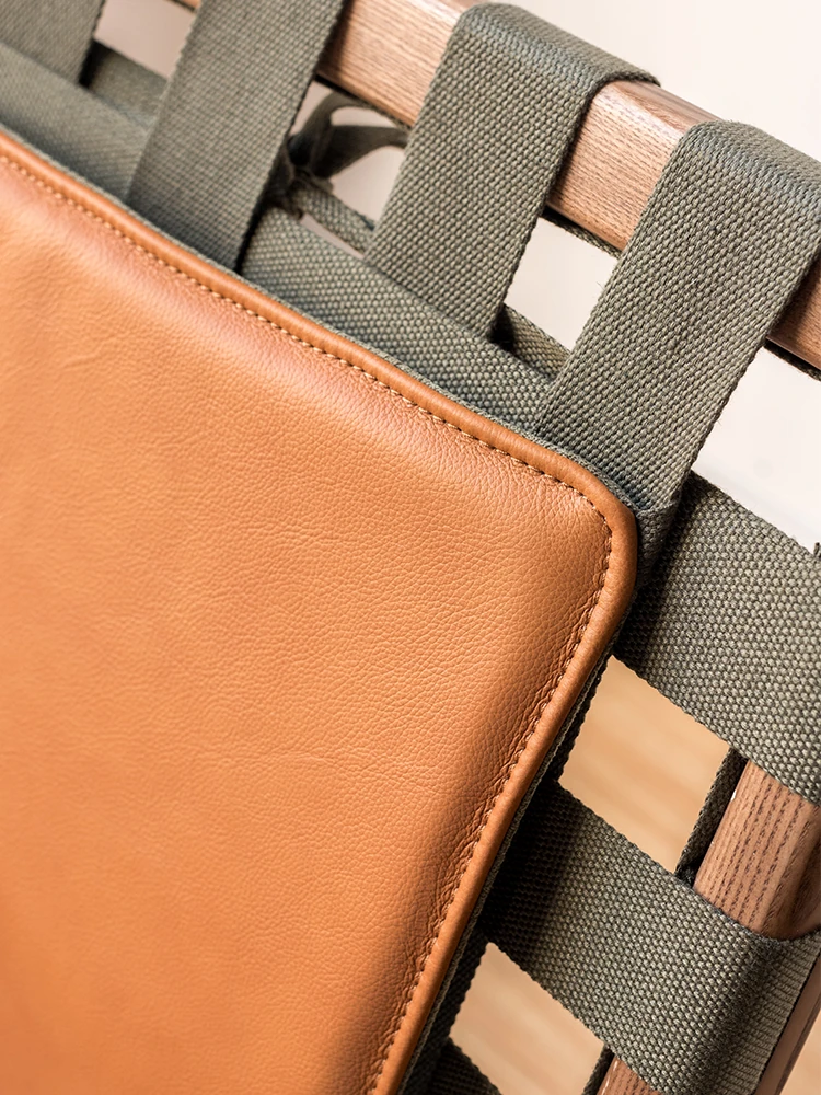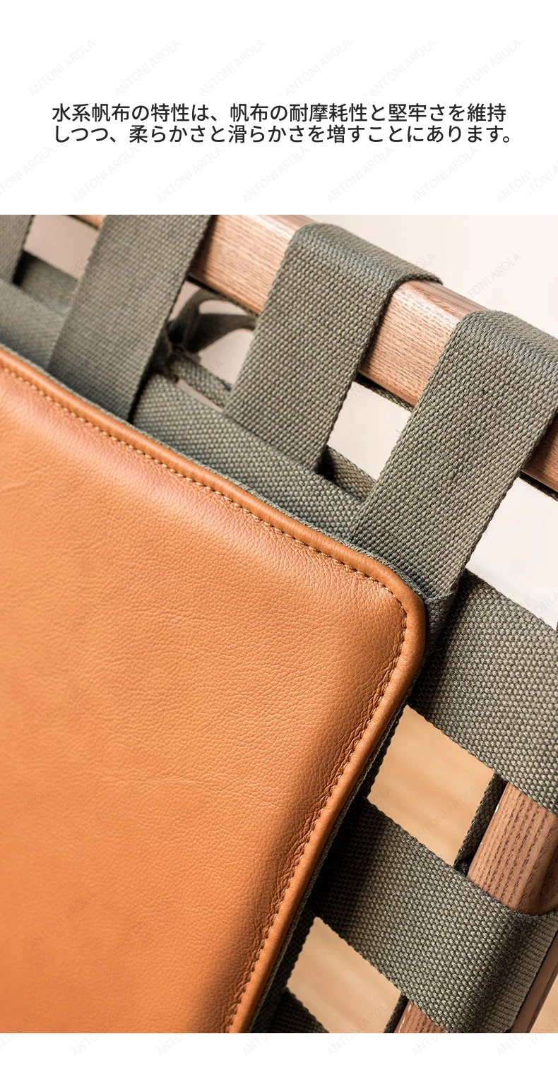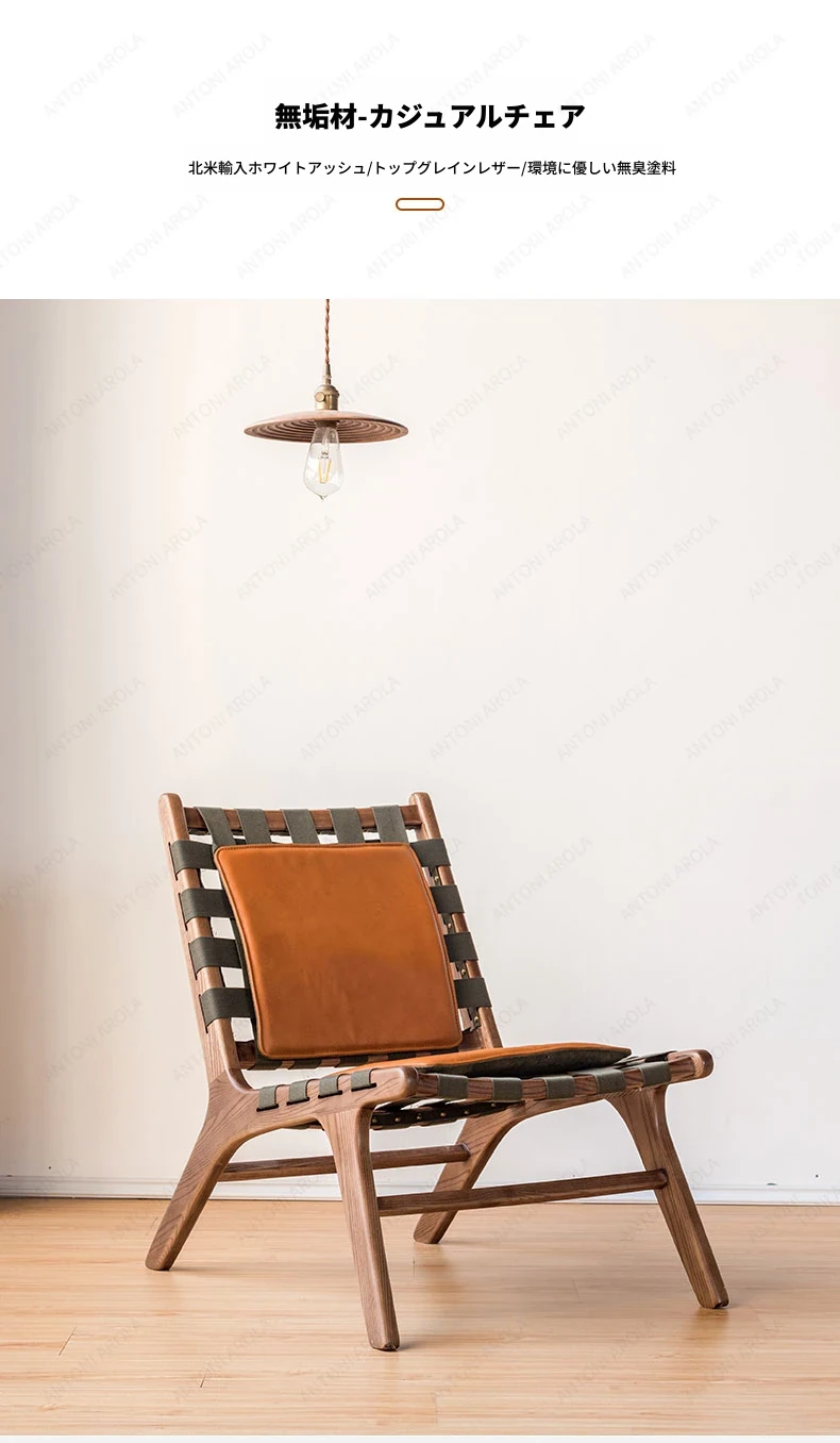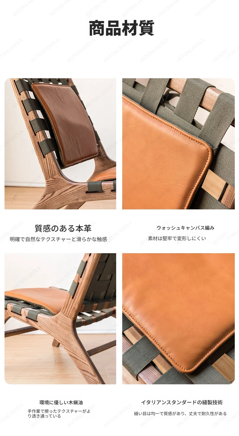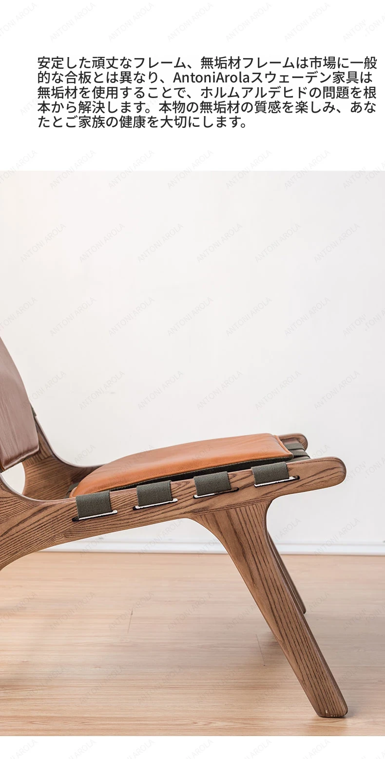 侘寂スタイルのシンプルな無垢材サドルチェア、真皮編みのリクライニングチェア。都会的なリラックス空間にぴったりの現代的なバルコニー用ラグジュアリーソファチェア。