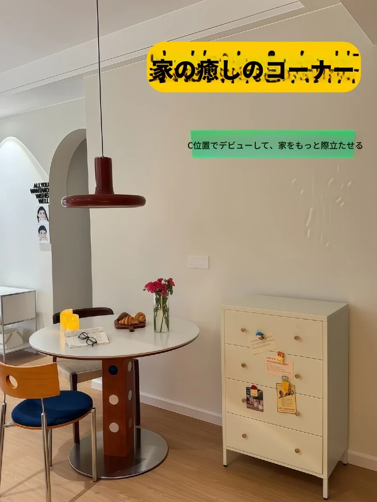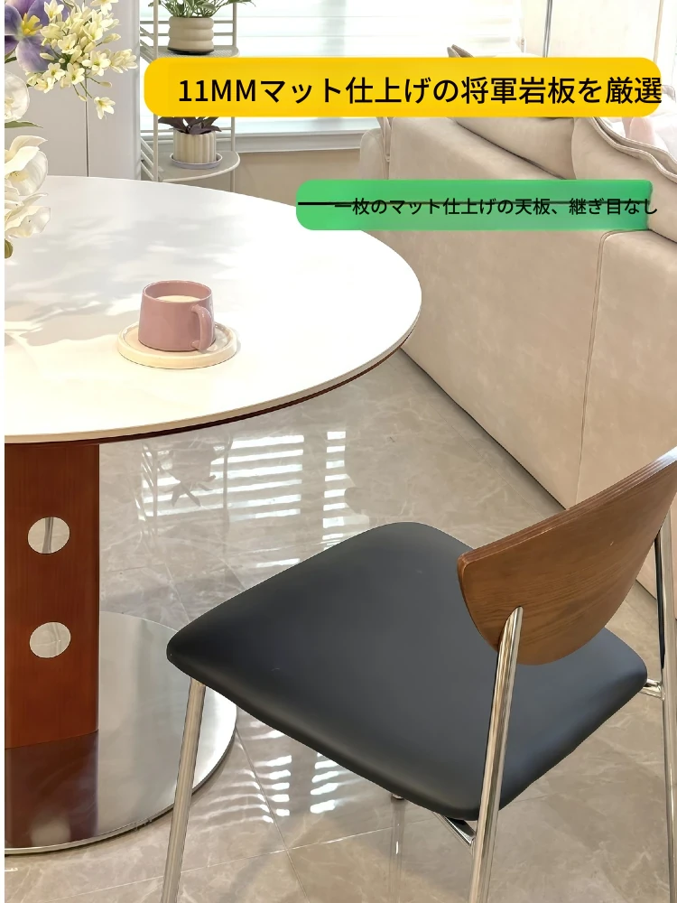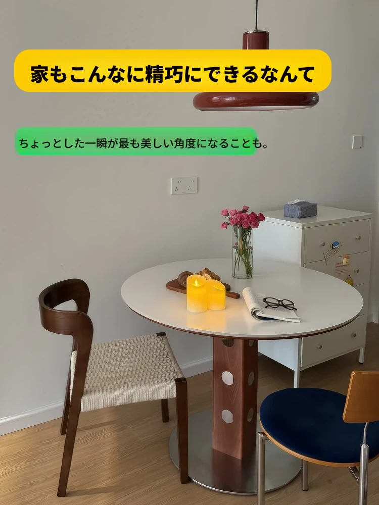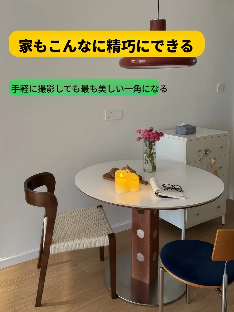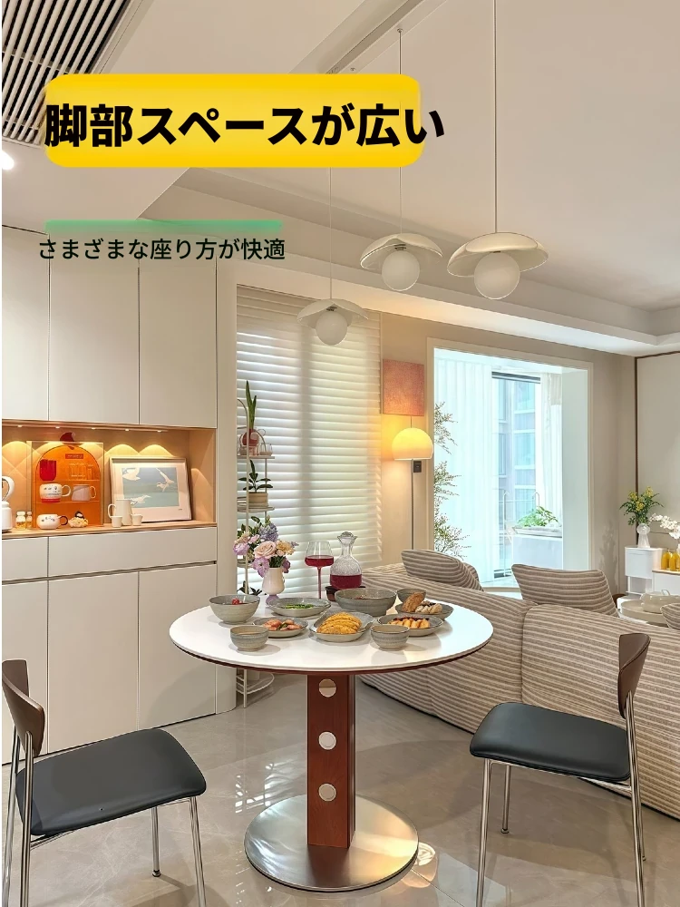 知沐2025年新作!おしゃれなレトロデザインのバーグストーン製ダイニングテーブル&チェアセット。クリーミーな色合いで、小さなお部屋にもぴったりな丸型テーブル。家族や友人との楽しい食事時間を演出します!