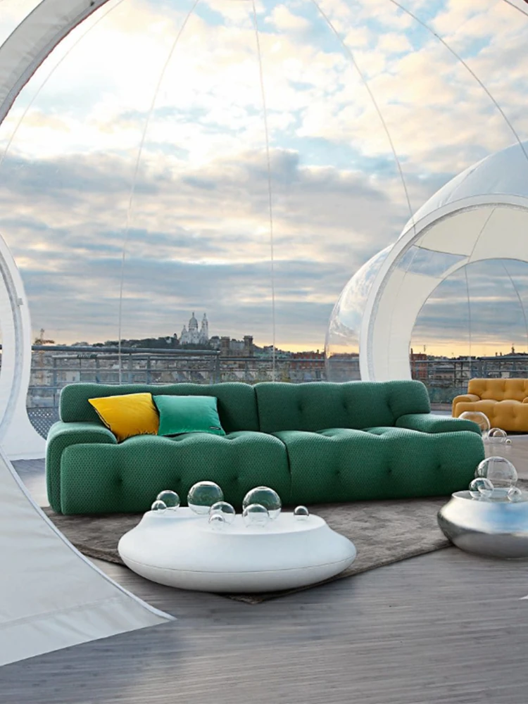 イタリアンスタイルのファブリックソファ - 高級デザイナー家具、別荘リビングに最適なエレガントなアーチ型コーナー&異形デザインのカウチソファ。快適さと美しさを兼ね備えた、特別な空間を演出します!