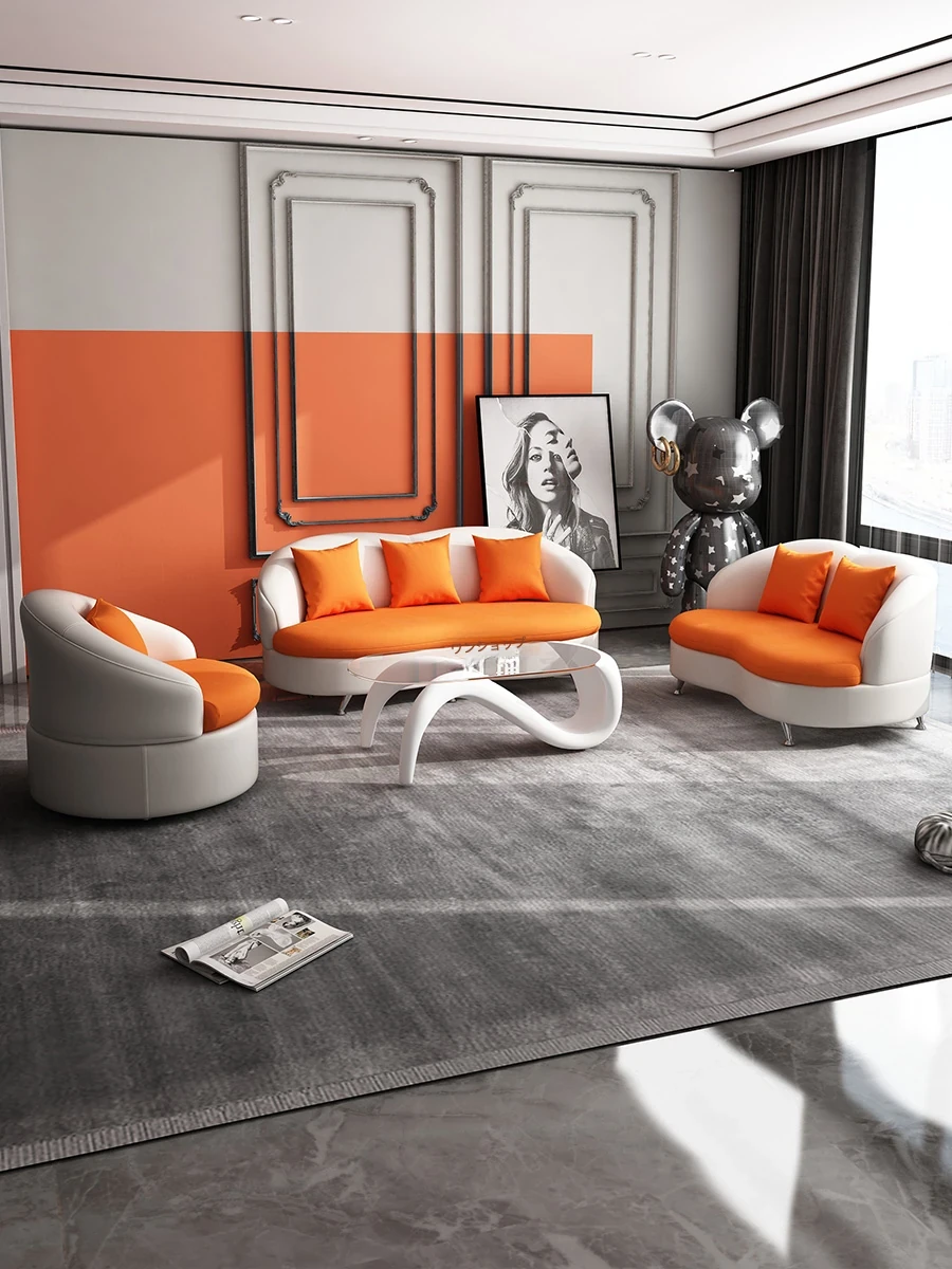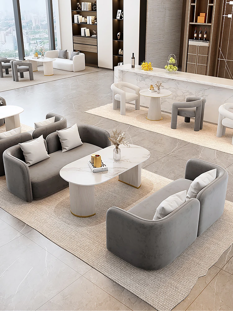 個性的な小型ソファ&クリエイティブなオフィス用接待セット!寝室や美容院、美甲店にぴったりのファッショナブルな異形小テーブルのコンビネーションで、空間をスタイリッシュに演出します。