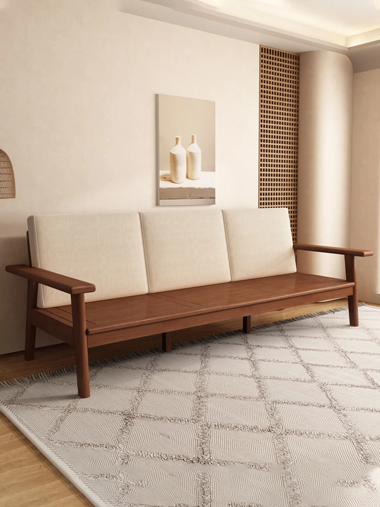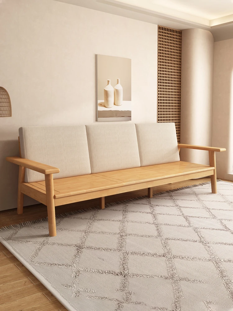 北欧スタイルの無垢材ソファ|小型住宅に最適|和風リビング家具|冬夏兼用の布張り3人掛けソファで、居心地の良い空間を実現!