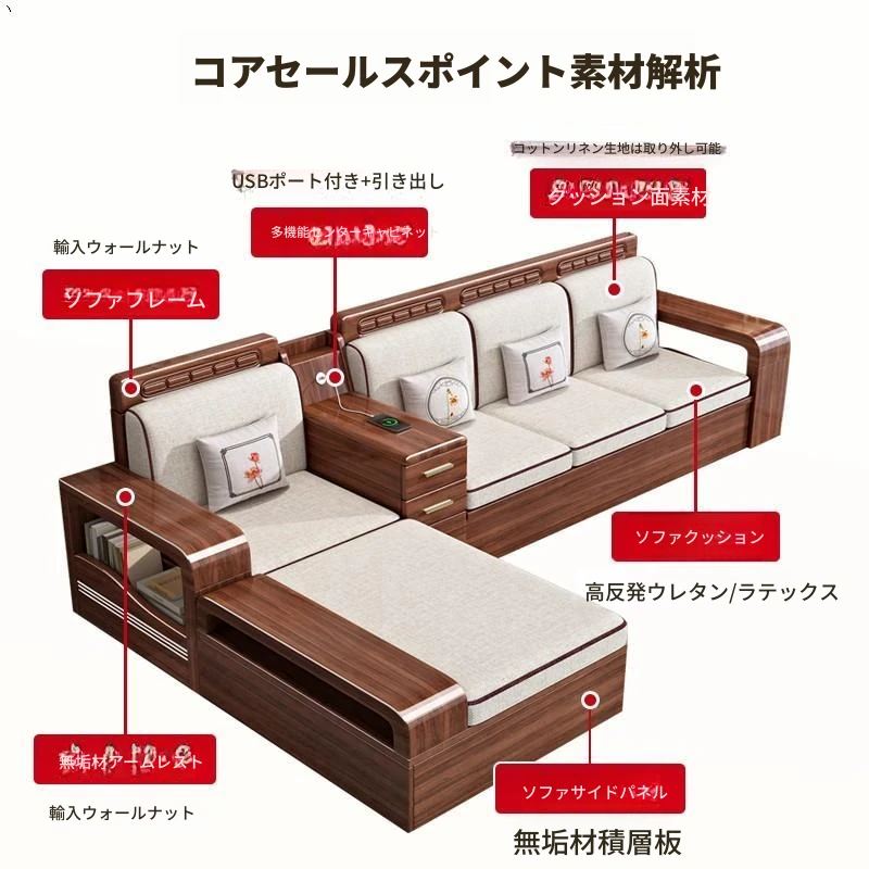 新中式全実木黒胡桃木コンビネーションソファ 小型住宅向け 高さのあるボックス付き 貴妃スタイル シンプルなリビングルーム収納ソファ 収納力抜群でおしゃれな空間を演出!